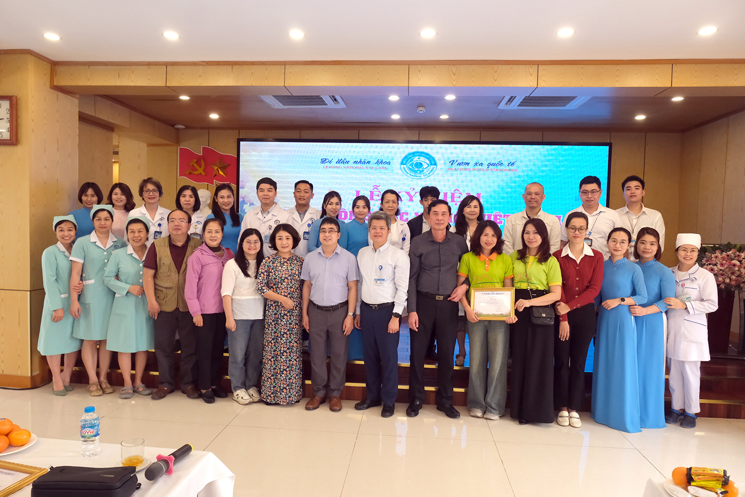 Thay mặt lãnh đạo Bệnh viện Mắt Trung ương và người bệnh, ông Phạm Ngọc Đông và ông Nguyễn Đức Thành đã trao bằng ghi nhận những tấm lòng hảo tâm, tổ chức thiện nguyện đồng hành cùng với Bệnh viện để hỗ trợ bệnh nhân nghèo trong suốt một năm qua: Nhóm thiện nguyện “Một ngày mới’, Quỹ Hỷ Liên Tâm, Nhóm Ước mơ xanh, Nhóm cơm nhà từ thiện, Quỹ Điều ước nhỏ, Hội cựu học sinh trường Kim Liên và những người bạn…