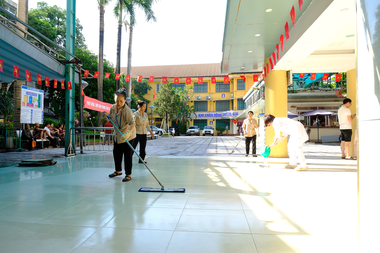 Lãnh đạo Bệnh viện Mắt Trung ương kêu gọi, huy động toàn thể cán bộ, nhân viên, người lao động đi làm thứ Bảy ngày 27/9/2025, để hưởng ứng và thực hiện kế hoạch “Ngày hội 5S và tổng vệ sinh toàn bệnh viện”, sắp xếp nơi làm việc ngăn nắp, chung tay xây dựng môi trường bệnh viện xanh -sạch -đẹp, góp phần thực hiện mục tiêu nâng cao chất lượng phục vụ toàn diện, vì sự hài lòng của người bệnh.