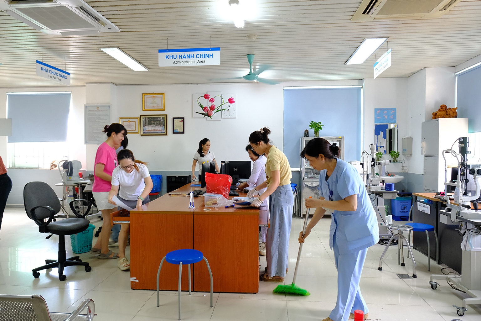 Theo đó, mỗi khoa, phòng Bệnh viện Mắt Trung ương xây dựng kế hoạch tổng vệ sinh phù hợp với chức năng nhiệm vụ của mình.