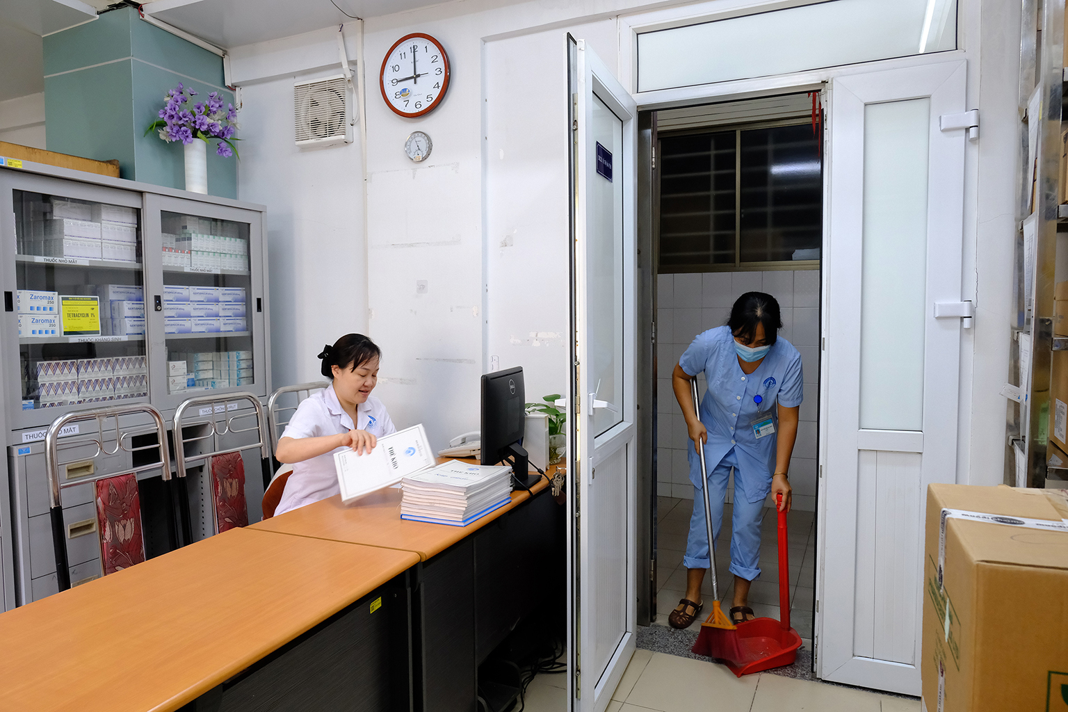 Đối với khối khoa phòng lâm sàng và cận lâm sàng, triển khai các hoạt động sắp xếp lại hồ sơ, trang thiết bị, thuốc men, đồ dùng ngăn nắp, theo các bộ tiêu chí chất lượng bệnh viện, chủ động kiểm soát quy trình chống nhiễm khuẩn nghiêm ngặt. Ở khối phòng, ban chức năng hành chính, các hoạt động sắp xếp lại tài liệu, hồ sơ khoa học, gọn gàng, sạch sẽ.