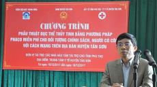 Từ ngày 15 đến 18 tháng 12 năm 2017 tại Trung tâm Y tế huyện Tân Sơn sẽ tiến hành khám và phẫu thuật đục thể thủy tinh bằng phương pháp Phaco miễn phí cho 200 bệnh nhân thuộc các diện chính sách và bệnh nhân có hoàn cảnh khó khăn tại huyện Tân Sơn, Phú Thọ.