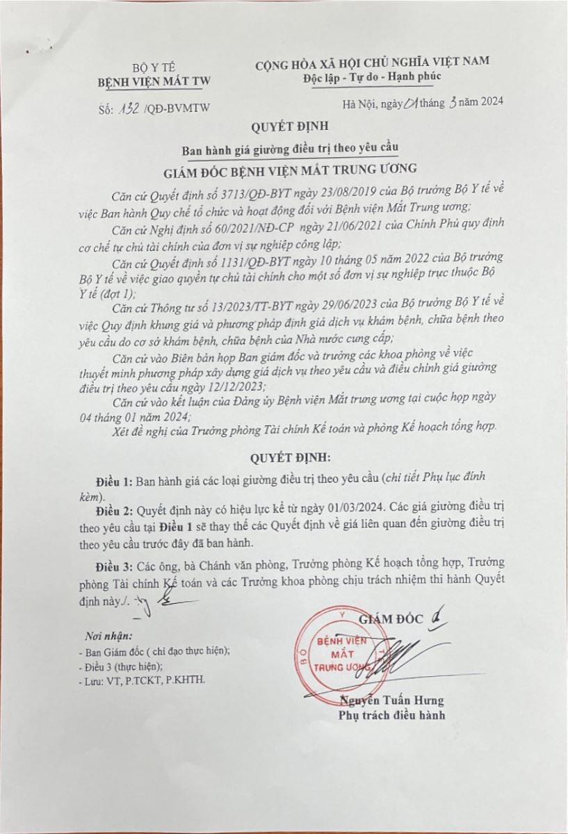 Quyết định ban hành giá dịch vụ Laser femtosecond điều trị tật khúc xạ