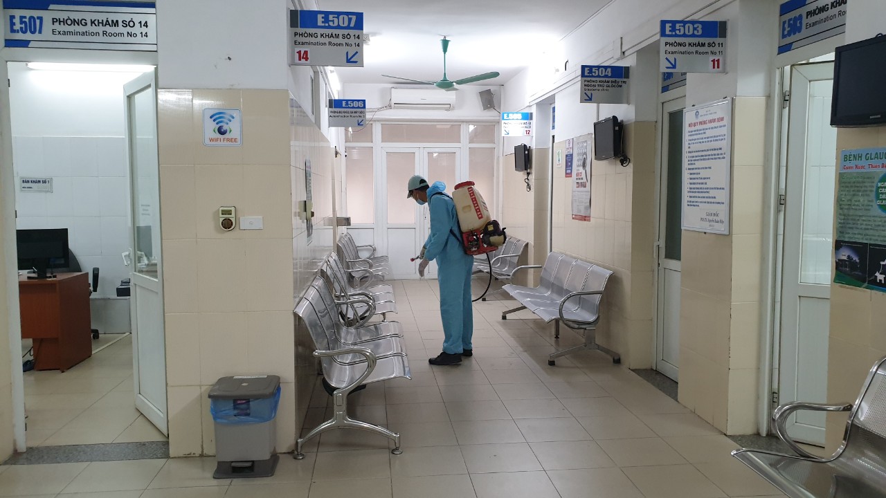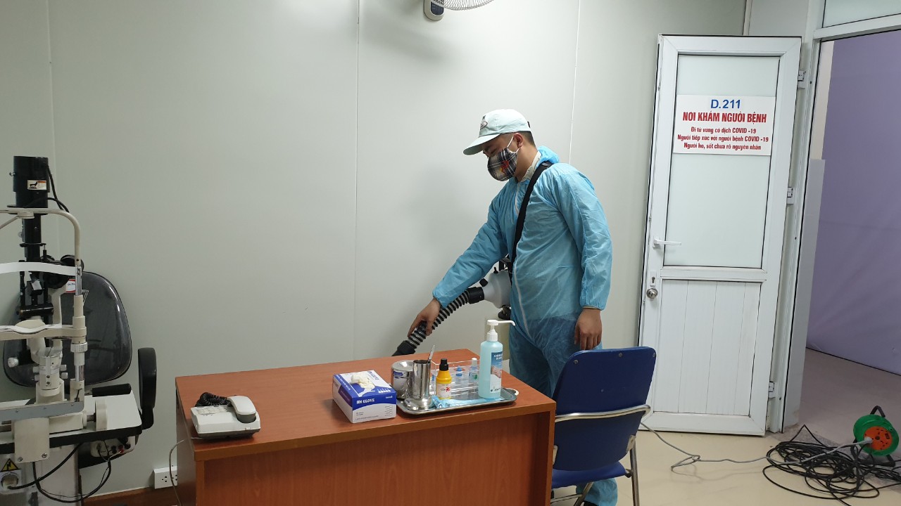 Chuẩn bị cho tuần cao điểm phòng chống dịch bệnh COVID-19 từ 23-30/3/2020, chiều ngày 21/3 Bệnh viện Mắt TW tiếp tục triển khai phun thuốc khử khuẩn toàn bộ khuôn viên bệnh viện. Đây là lần thứ 5 bệnh viện thực hiện khử khuẩn kể từ khi dịch bệnh bùng phát.
