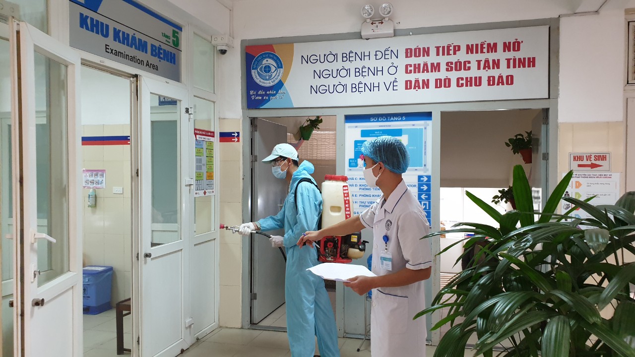 Bệnh viện Mắt Trung ương tiếp tục triển khai phun thuốc khử khuẩn toàn bộ khuôn viên bệnh viện phòng chống dịch bệnh COVID-19