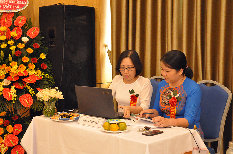 Và Đoàn thư ký gồm 02 đồng chí sau:Đ/c Đoàn Thị Hà - Đảng viên chi bộ QLKH-Đ/c Cát Vân Anh - Đảng viên chi bộ KHTH đã làm nhiệm vụ chỉ đạo thực hiện chương trình đại hội và ghi chép các nội dung cần thiết.