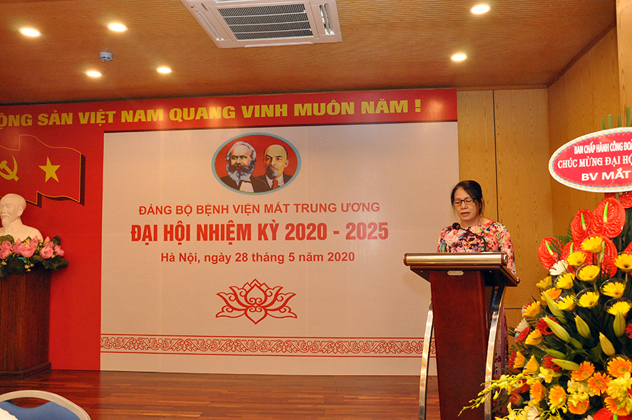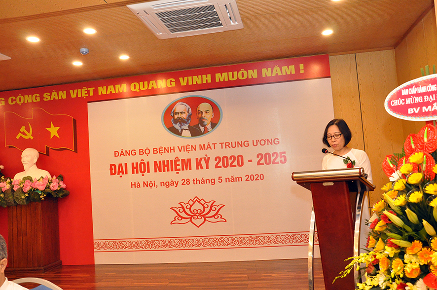 Đại hội cũng được vinh dự đón tiếp và lắng nghe ý kiến chỉ đạo của Đ/c Đinh Thị Lan Duyên - Phó Bí thư thưởng trực Quận ủy, Chủ tịch HĐND Quận Hai Bà Trưng. Vui mừng trước thành tích mà Đảng bộ Bệnh viện Mắt Trung ương đã đạt được nhưng trong thời gian tới, đồng chí cho rằng Đảng bộ bệnh viện cần chú trọng công tác xây dựng đảng, xây dựng hệ thống chính trị, tăng cường công tác phát triển Đảng. Bên cạnh đó cần tập trung các nghiệp vụ chuyên môn để khám chữa bệnh cho nhân dân, thực hiện tốt cơ chế Đảng lãnh đạo, nhân dân làm chủ, không ngừng xây dựng khối đoàn kết nội bộ, dân chủ trong các chi bộ, các khoa phòng, phát triển trình độ chuyên môn KHKT trong bệnh viẹn, quan tâm kiện toàn các tổ chức cơ sở, tham gia xây dựng Đảng, chính quyền trong sạch vững mạnh. Đ/c Nguyễn Xuân Hiệp đã thay mặt Đại hội tiếp thu ý kiến của đ/c Đinh Thị Lan Duyên và hứa sẽ phấn đấu hoàn thành tốt các chỉ tiêu, nhiệm vụ Nghị quyết ĐH đề ra, cũng như chỉ tiêu, nhiệm vụ cấp trên giao cho.