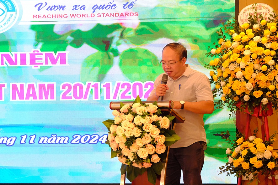 Đại diện các học viên - Bs Đoàn Đức Long đã thay mặt các sinh viên, học viên đang theo học tại Bệnh viện chia sẻ những cảm xúc trong trẻo, chân thành của học viên trong ngày 20/11 cũng như sự hàm ơn, kính trọng của các trò… đã thực sự gây xúc động cho các thầy cô trong hội trường.