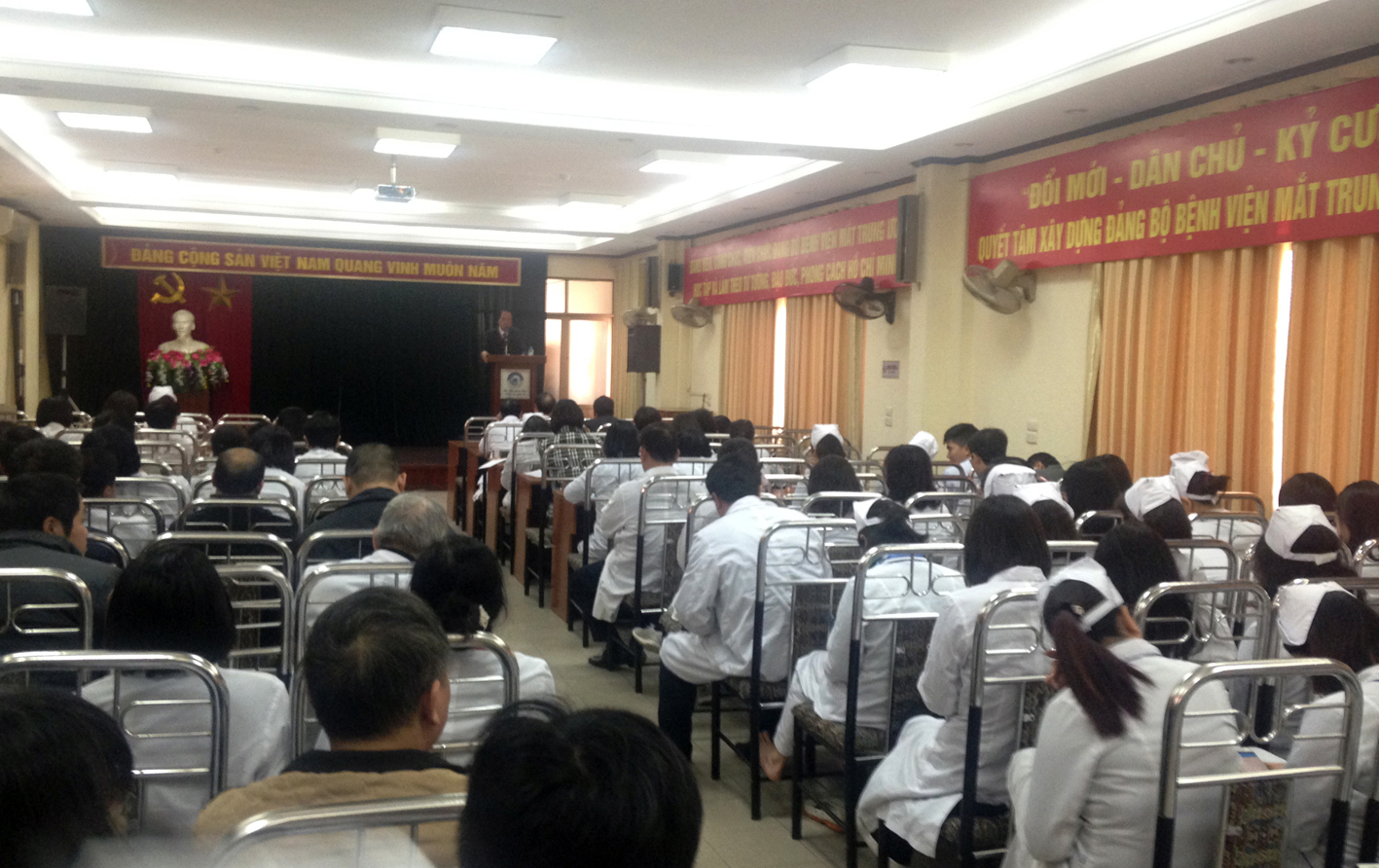 Với tinh thần tập trung, nghiêm túc các cán bộ, đảng viên bệnh viện Mắt TW đã được nghe đồng chí Ngô Bá Toại – nguyên Phó giám đốc Trung tâm thông tin công tác Tuyên giáo – Ban Tuyên giáo Trung ương truyền đạt nội dung cơ bản của 4 Nghị quyết TW 6 khóa XII: Nghị quyết số 18-NQ/TW “Một số vấn đề về tiếp tục đổi mới, sắp xếp tổ chức bộ máy của hệ thống chính trị tinh gọn, hoạt động hiệu lực, hiệu quả”; Nghị quyết số 19-NQ/TW “Về tiếp tục đổi mới hệ thống tổ chức và quản lý, nâng cao chất lượng và hiệu quả hoạt động của các đơn vị sự nghiệp công lập”; Nghị quyết số 20-NQ/TW “Về tăng cường công tác bảo vệ, chăm sóc và nâng cao sức khỏe nhân dân trong tình hình mới”; Nghị quyết số 21-NQ/TW “Về công tác dân số trong tình hình mới”. Trong đó Báo cáo viên đã đi sâu phân tích các nghị quyết số 20, 21 liên quan trực tiếp đến các đơn vị y tế.