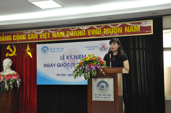 Ths. Lê Hoàng Yến – Trưởng phòng Điều dưỡng đã trình bày báo cáo tổng kết đợt thi đua chảo mừng ngày Quốc tế điều dưỡng. phương hướng hoạt động của khối điều dưỡng năm 2018. Báo cáo chú trọng vào 3 nhiệm vụ trọng tâm: nâng cao chất lượng chăm sóc người bệnh; tăng cường công tác đào tạo cả về chuyên môn và kỹ năng giao tiếp ứng xử; đẩy mạnh công tác quản lý. Ths. Hà Thị Kim Phượng thay mặt Cục quản lý khám chữa bệnh Bộ Y tế đánh giá cao sự định hướng đúng đắn, sự quan tâm và chỉ đạo sát sao của Ban Giám đốc bệnh viện trong việc xây dựng, phát triển đội ngũ điều dưỡng, nâng cao tinh thần, thái độ, chất lượng phục vụ hướng tới sự hài lòng của người bệnh, đánh giá cao vai trò chủ động tích cực của phòng Điều dưỡng bệnh viện trong việc tham mưu cho lãnh đạo bệnh viện, tổ chức triển khai thực hiện hiệu quả công tác điều dưỡng và chăm sóc người bệnh.