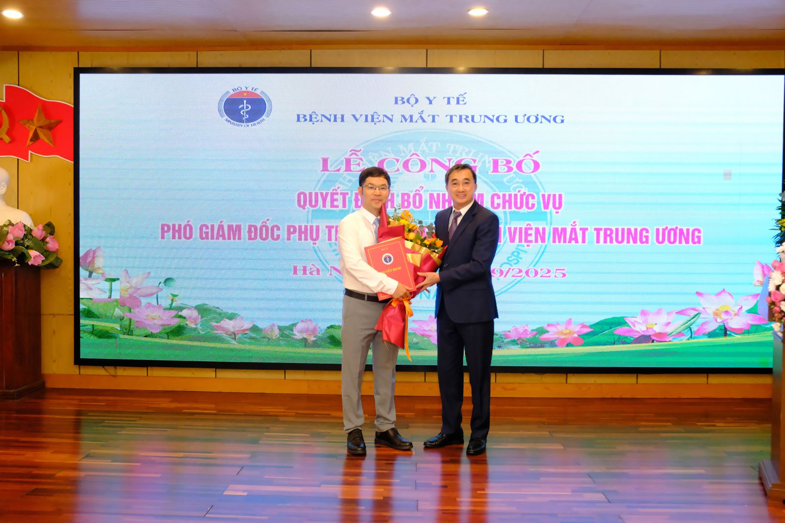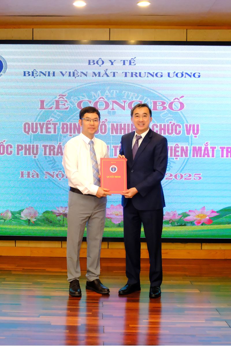 Chiều ngày 5/9/2025, Bộ Y tế tổ chức Lễ công bố quyết định của Bộ trưởng Bộ Y tế về việc bổ nhiệm ông Hoàng Anh Tuấn, bác sỹ cao cấp, tiến sỹ ngành giải phẫu bệnh, Trưởng khoa Xét nghiệm giữ chức Phó Giám đốc phụ trách kinh tế Bệnh viện Mắt Trung ương với thời hạn 5 năm.