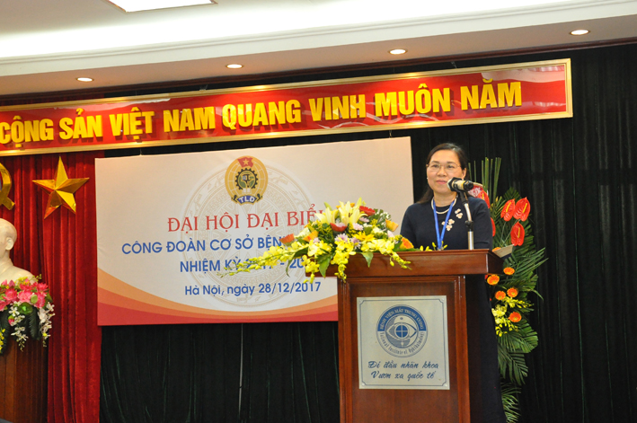 Báo cáo của chủ tịch công đoàn BV Nguyễn Đức Thành đã nêu rõ những thuận lợi và khó khăn trong công tác công đoàn nhiệm kỳ 2012-2017. Trong đó nhấn mạnh sự chỉ đạo của Đảng ủy, BGĐ, đoàn kết đồng lòng của toàn bộ đội ngũ đoàn viên là sức mạnh to lớn giúp bệnh viện hoàn thành xuất sắc mọi nhiệm vụ, vượt qua giai đoạn khó khăn nhất của những năm 2014-2015.Đại hội kết thúc nhiệm kỳ diễn ra trong những ngày cuối năm 2017 đầy thăng hoa: bệnh viện tròn 100 tuổi, được trao tặng Huân chương Độc lập hạng III, vinh dự được Thủ tướng đến thăm và làm việc…BCH cũng thẳng thắn nghiêm túc ghi nhận những tồn tại để nhiệm kỳ mới có thể khắc phục: hoạt động công đoàn còn có lúc chìm lắng, không đồng đều, thiếu tính sáng tạo, chưa ngang tầm với đà phát triển chung của bệnh viện. Phát biểu chỉ đạo đại hội, đồng chí Trần Thị Bích Hằng - Chủ tịch CĐYT Việt Nam đã nhiệt liệt biểu dương và ghi nhận những thành tích nổi bật của bệnh viện: các phong trào thi đua yêu nước, hoạt động văn thể mỹ, đặc biệt là hoạt động nghiên cứu khoa học của bệnh viện là rất ấn tượng. Các hoạt động thiện nguyện của bệnh viện: hiến máu tình nguyện, ủng hộ các quĩ xã hội cũng rất đáng học tập nhưng cần đầy mạnh công tác phát triển Đảng cho công đoàn viên ưu tú, quan tâm hơn nữa đến công tác truyền thông. Truyền thông không chỉ một chiều hướng đến sự hài lòng của người bệnh mà còn là giáo dục bệnh nhân và người nhà họ tuân thủ nội qui, hợp tác, tạo điều kiện để nhân viên y tế hoàn thành tốt nhiệm vụ.