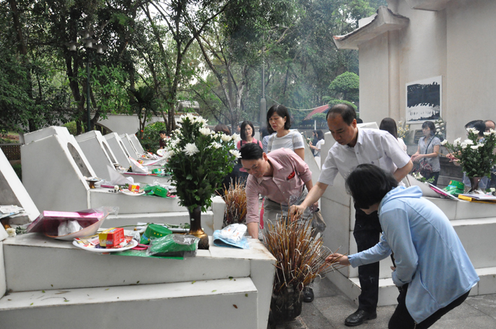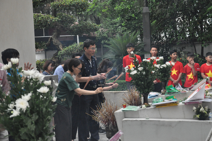 Thay mặt đoàn, PGS.TS. Nguyễn Xuân Hiệp – Bí thư Đảng ủy, Giám đốc bệnh viện đã dâng hương, đặt vòng hoa trước anh linh 10 nữ Anh hùng liệt sĩ. Trong không khí trang nghiêm, thành kính, đoàn đã giành một phút tưởng niệm các nữ Anh hùng liệt sĩ, bày tỏ lòng thương tiếc khôn nguôi, biết ơn vô hạn trước sự hi sinh anh dũng của các chị vì sự nghiệp giải phóng dân tộc, thống nhất đất nước.