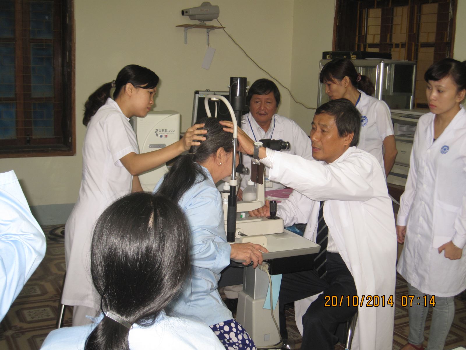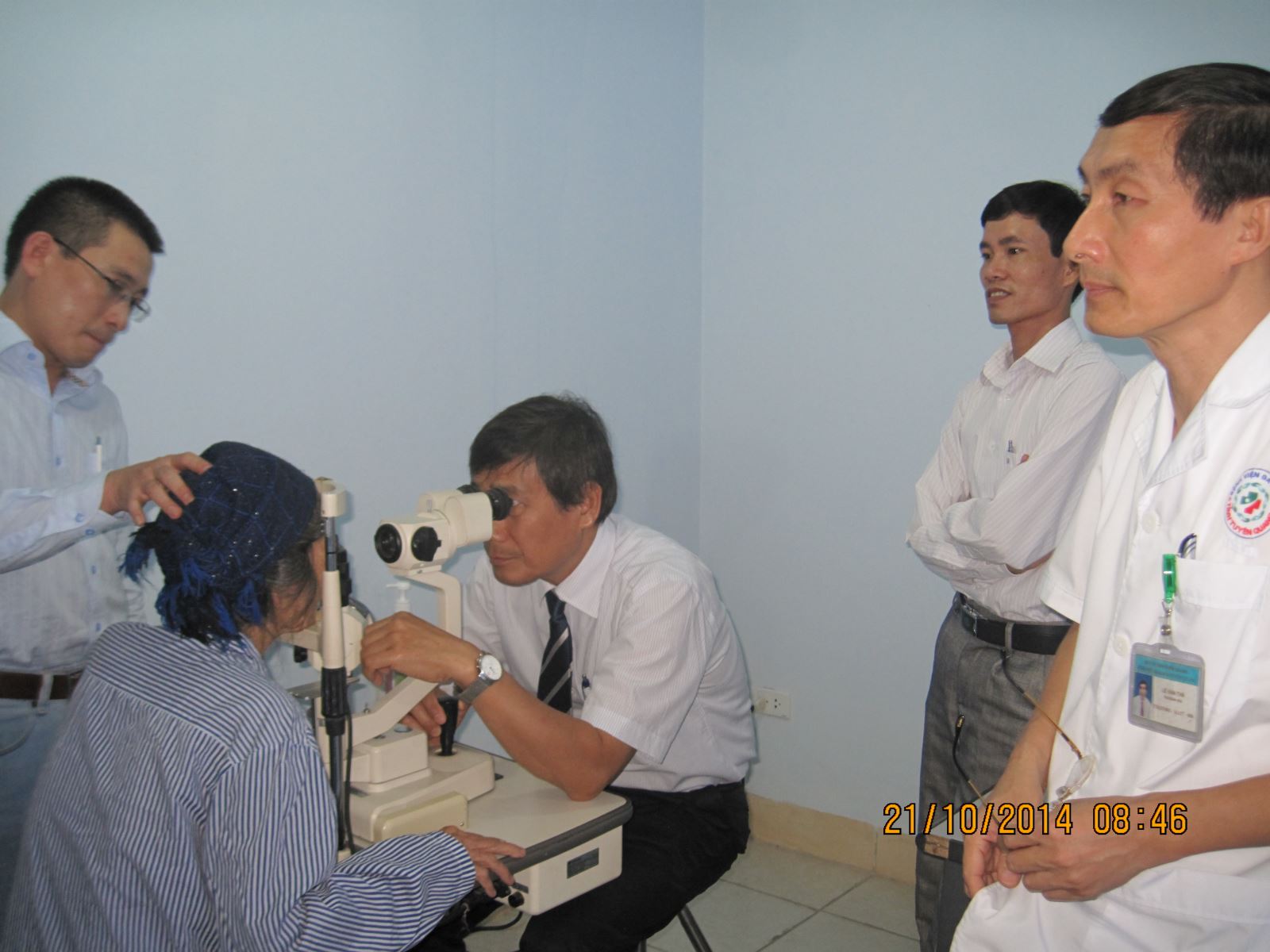 Hình ảnh PGS.TS. Trần An, phó Giám đốc BVMTW cùng ban lãnh đạo TTPCBXH và Khoa mắt BVĐK tỉnh Tuyên Quang đang khám cho bệnh nhân tại Khoa mắt BVĐK Tuyên Quang