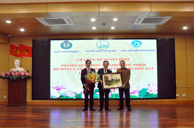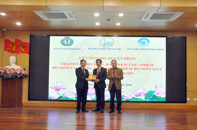 LỄ CÔNG BỐ QUYẾT ĐỊNH THÀNH LẬP BỘ MÔN, LÃNH ĐẠO BỘ MÔN VÀ TREO BIỂN BỘ MÔN MẮT, KHOA Y DƯỢC ĐHQGHN TẠI BỆNH VIỆN MẮT TW.