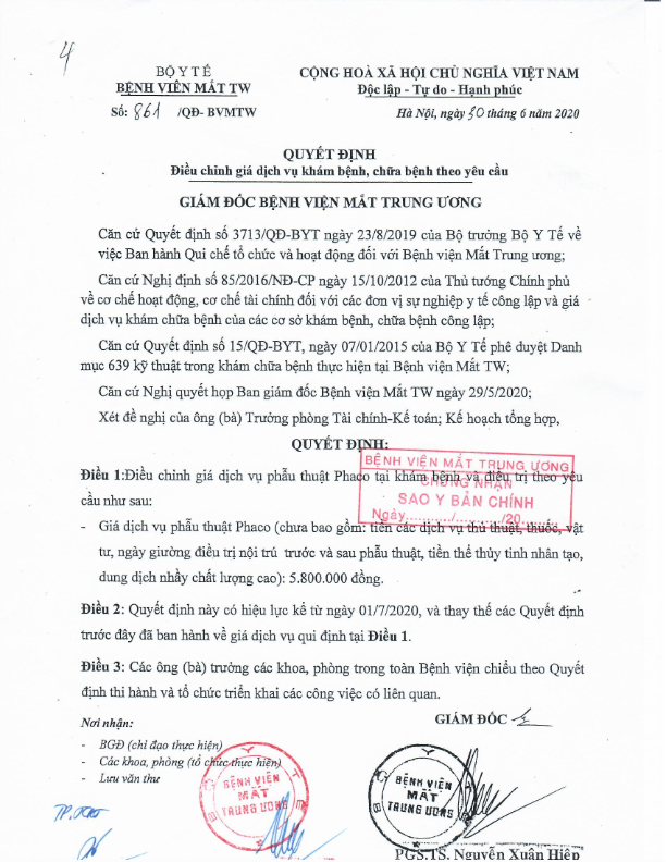 Điều chỉnh giá dịch vụ phẫu thuật phaco tại Khám bệnh và điều trị theo yêu cầu