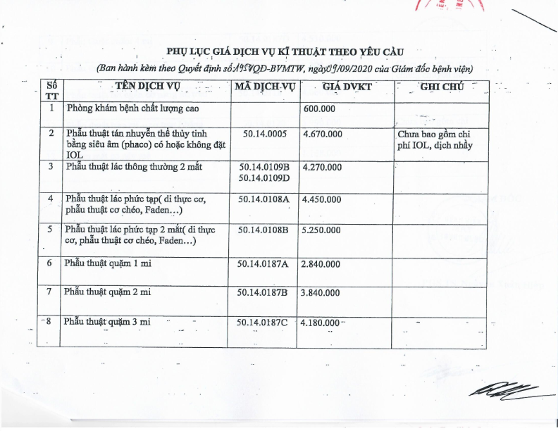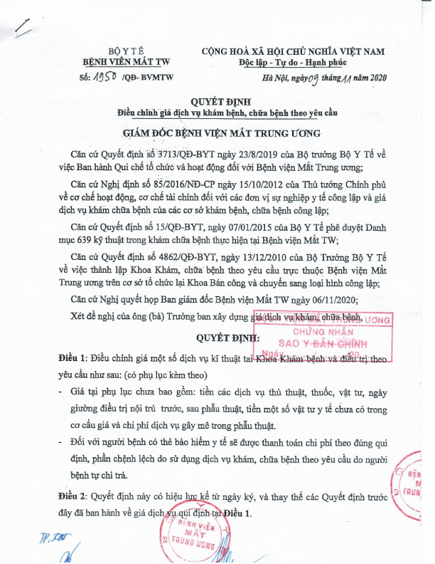 Quyết định ban hành giá dịch vụ Laser femtosecond điều trị tật khúc xạ