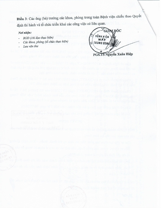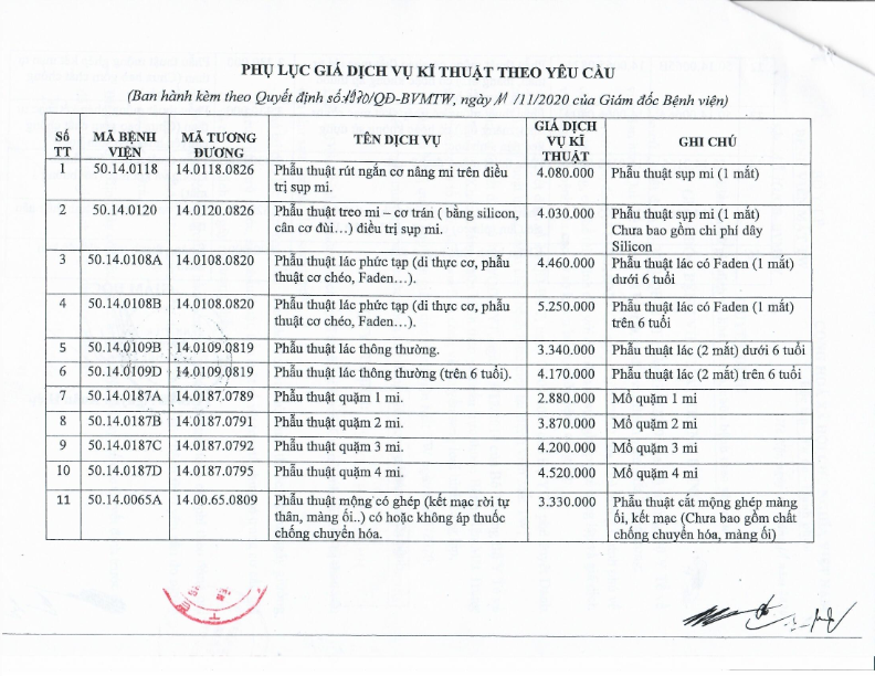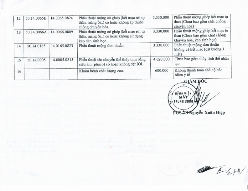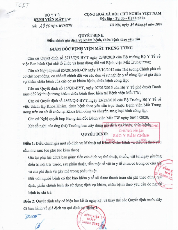Quyết định ban hành giá dịch vụ Laser femtosecond điều trị tật khúc xạ