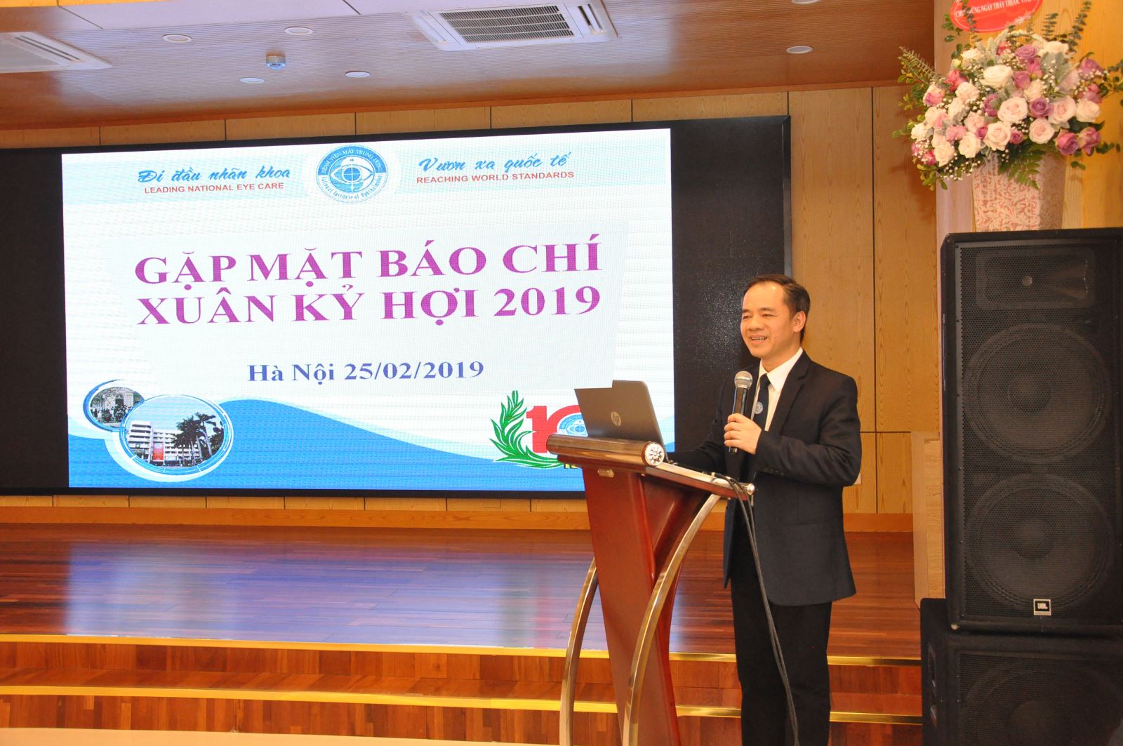 Phát biểu tại buổi gặp mặt, PGS.TS Nguyễn Xuân Hiệp, Phó trưởng Ban chỉ đạo Quốc gia PCML Bộ Y tế, Giám đốc Bệnh viện Mắt TW thay mặt ngành Mắt cảm ơn các cơ quan báo chí trong năm qua đã sát cánh với ngành Mắt, với Bệnh viện thực hiện tốt công tác tuyên truyền, nâng cao nhận chăm sóc mắt của người dân. Đặc biệt, báo chí có vai trò góp sức rất lớn cổ vũ cho phong trào hiến tặng giác mạc trên cả nước, điển hình như bé Hải An qua đời, hiến tặng giác mạc mang nguồn ánh sang cho 2 người, trở thành một biểu tượng nhân văn, một trong những câu chuyện gây xúc động nhất trong năm 2018. PGS.TS Nguyễn Xuân Hiệp mong muốn trong năm tới, các cơ quan báo chí, truyền thông tiếp tục sát cánh cuảng ngành Mắt, Bệnh viện đẩy mạnh hơn nữa các hoạt động tuyên truyền, vận động, nâng cao kiến thức người dân trong việc bảo vệ đôi mắt nói chung cũng như hiến tặng giác mạc nói riêng, chia sẻ những hình ảnh đẹp, những gương người tốt việc tốt của các thầy thuốc nhãn khoa trong sự nghiệp phòng chống mù lòa….