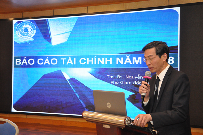 Đồng chí Nguyễn Đức Thành –phó giám đốc Bệnh viện đã báo cáo trước Hội nghị báo cáo tài chính công khai năm 2018. Bệnh viện quyết tâm cải thiện đời sống CBCC, từng bước tăng thu nhập cho người lao động. Cơ chế chi tiêu nội bộ, xây dựng cơ cấu giá vẫn đang được khẩn trương hoàn thiện và chờ thông qua.