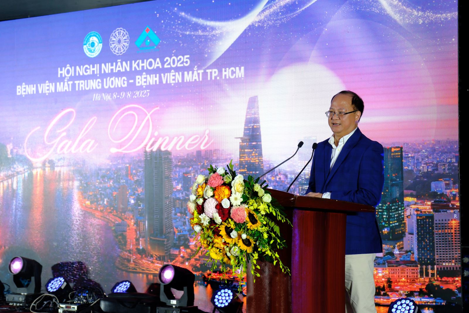 PGS.TS Phạm Ngọc Đông, Phó Chủ tịch kiêm Tổng thư ký Hội Nhãn khoa Việt Nam, Giám đốc Bệnh viện Mắt Trung ương thay mặt Ban tổ chức Hội nghị Nhãn khoa 2025 cảm ơn tới toàn thể đại biểu tham dự, cảm ơn sự quan tâm chỉ đạo sát sao của lãnh đạo Bộ Y tế tới ngành mắt Việt Nam nói chung và các cơ sở nhãn khoa nói riêng trong nhiều năm qua.