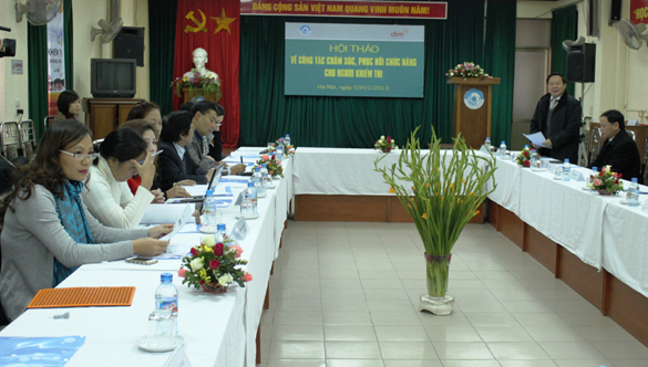 Phát biểu tại Hội thảo, PGS.TS Đỗ Như Hơn – Phó trưởng Ban chỉ đạo Quốc gia PCML Bộ Y tế, Giám đốc Bệnh viện Mắt TW cho biết: Công tác phục hồi chức năng cho người khiếm thị (Low vision rehabilitation) bắt đầu được triển khai tại bệnh viện Mắt TW từ năm 1999, do CBM tài trợ. Trong những năm qua, Bệnh viện Mắt TW (BVMTW) thúc đẩy và thành lập được phòng phục hồi chức năng cho người khiếm thị với một số trang thiết bị thiết yếu giúp cho việc khám, đánh giá chức năng thị giác và chỉ định các kính trợ thị cho người khiếm thị đến khám tại BVMTW, bên cạnh đó BVMTW đã và đang hỗ trợ trường Nguyễn Đình Chiểu - Hà Nội trong việc khám khiếm thị tại một số tỉnh thành, mở một số khoá đào tạo cơ bản về khiếm thị cho cán bộ nhãn khoa ở một số tỉnh thành, tuy nhiên hiệu quả của công việc chưa cao, hoạt động còn nhiều khó khăn và bất cập. Những đối tượng trực tiếp mà Dự án này triển khai gồm: Những trẻ khiếm thị sẽ được khám, chỉ định các phương pháp trợ thị và hướng dẫn các kỹ năng tự phục vụ để có thể theo học hoà nhập tại các trường bình thường; Những người khiếm thị trưởng thành và người khiếm thị lớn tuổi; Can thiệp sớm và tư vấn cho gia đình trẻ bị bệnh võng mạc trẻ đẻ non. Dự án triển khai từ tháng 1/2012 tại BVMTW, CBM sẽ tiếp tục phối hợp với BVMTW thúc đẩy các hoạt động này vào những năm tiếp theo, với mục đích nâng cao chất lượng cuộc sống cho người khiếm thị, giúp cho những người khiếm thị tại các vùng có dự án được chăm sóc, PHCN đến năm 2015. Dự án trên đã triển khai một số hoạt động cụ thể như: hoạt động khám và tư vấn PHCN tại trung tâm, đào tạo PHCN cho người khiếm thị, triển khai các hoạt động tại cộng đồng (2 tỉnh lân cận gồm: Hải Dương và Ninh Bình), triển khai các hoạt động truyền thông đại chúng…