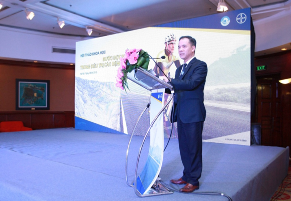 PGS.TS.BS. Nguyễn Xuân Hiệp, Giám đốc Bệnh viện Mắt Trung ương, Phó Chủ tịch kiêm Tổng thư kí Hội Nhãn khoa Việt Nam chủ tọa hội thảo khoa học về Bước đột phá trong điều trị các bệnh lý võng mạc do Bayer phối hợp với bệnh viện Mắt Trung Ương tổ chức ngày 6 tháng 4 năm 2018 tại Hà Nội