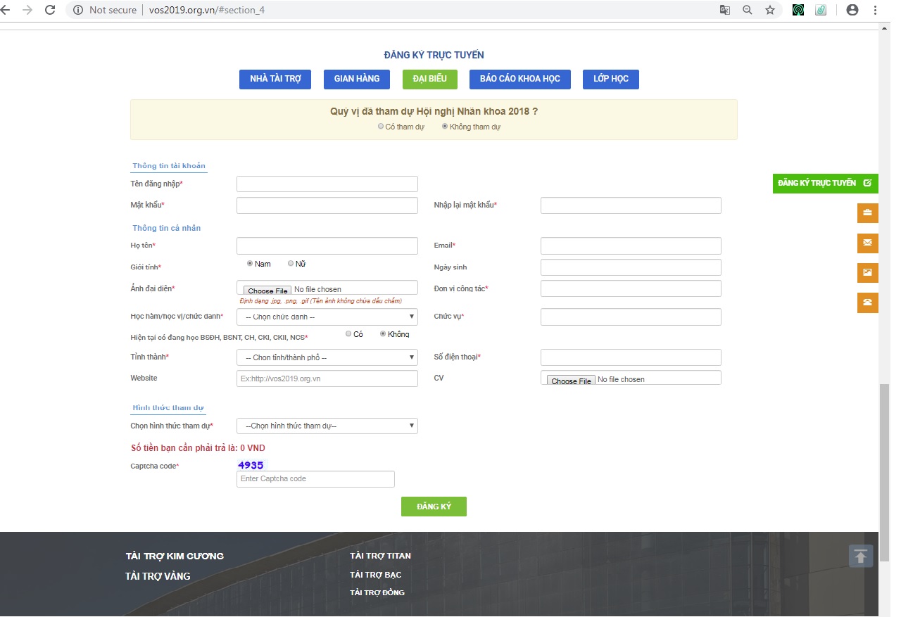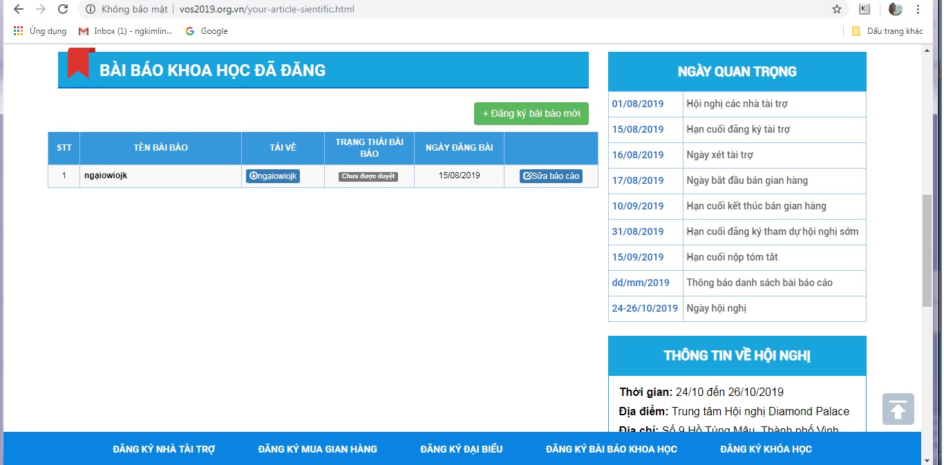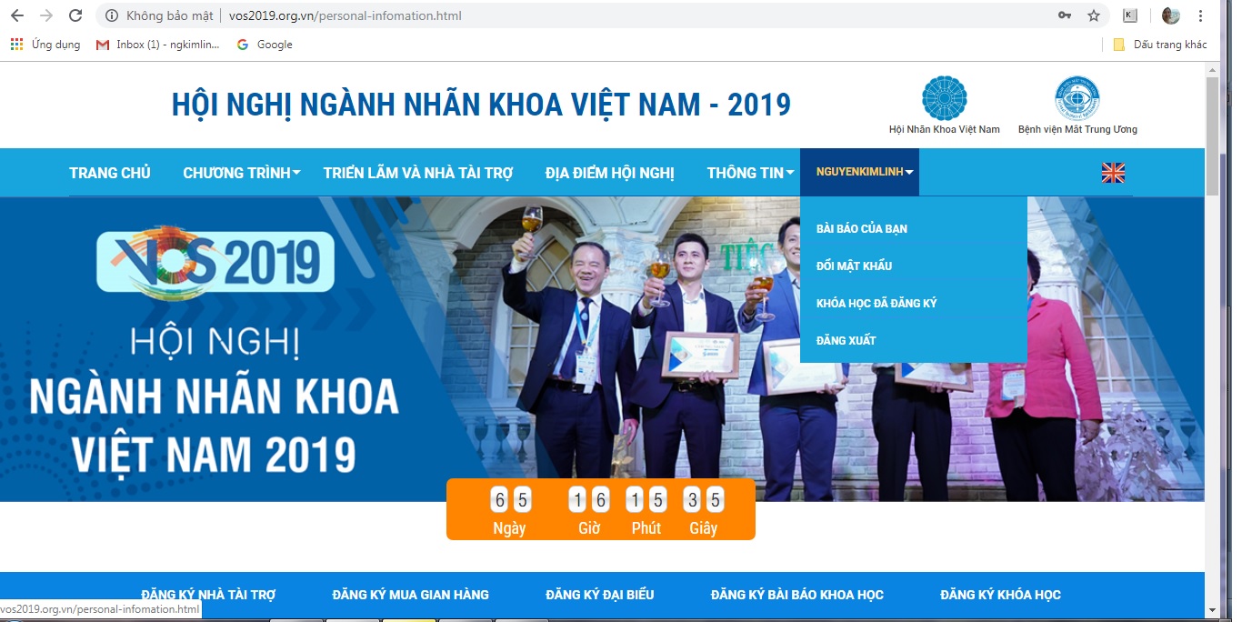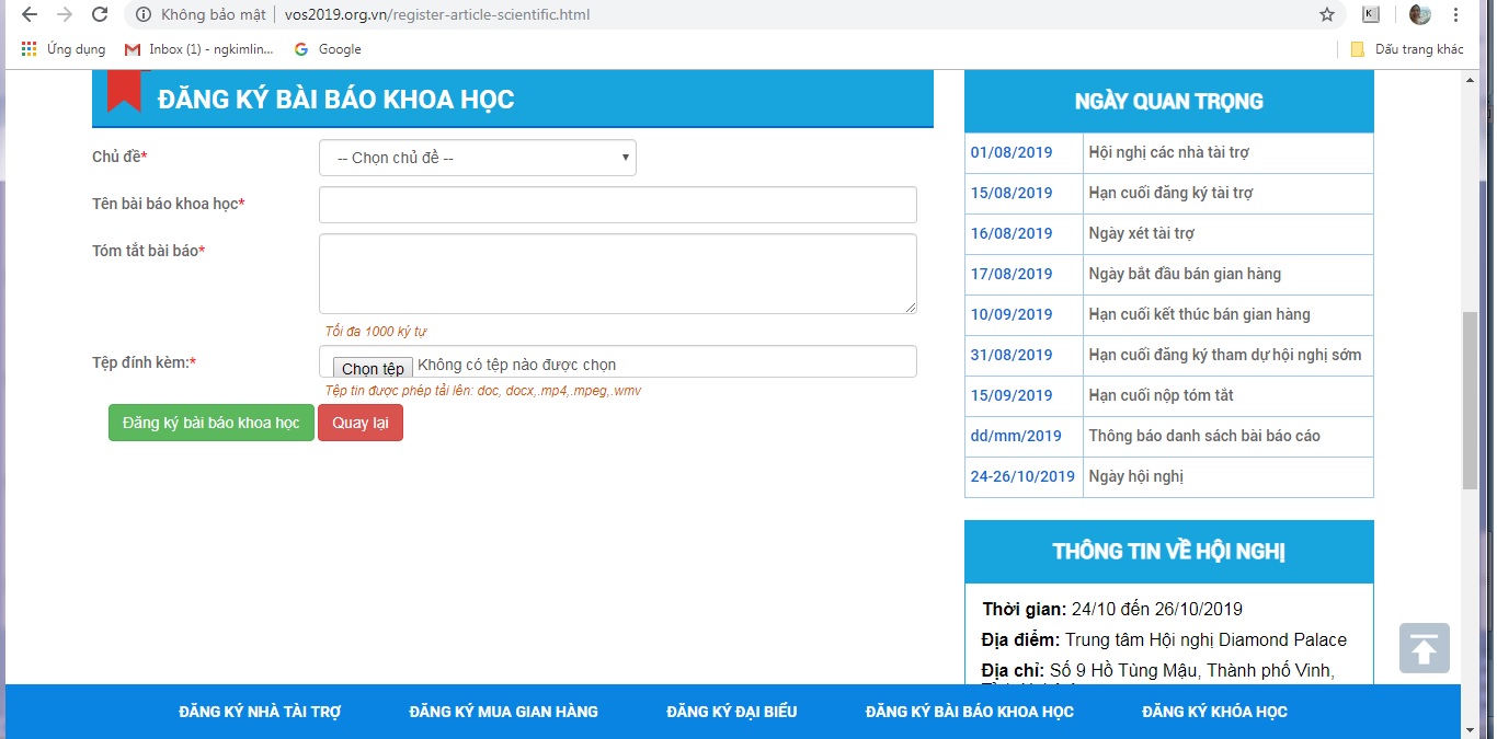 1. Đăng nhập website chính thức của Hội nghị: http\\www.vos2019.org.vn