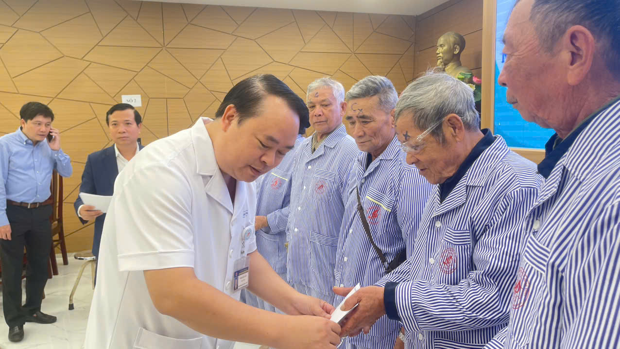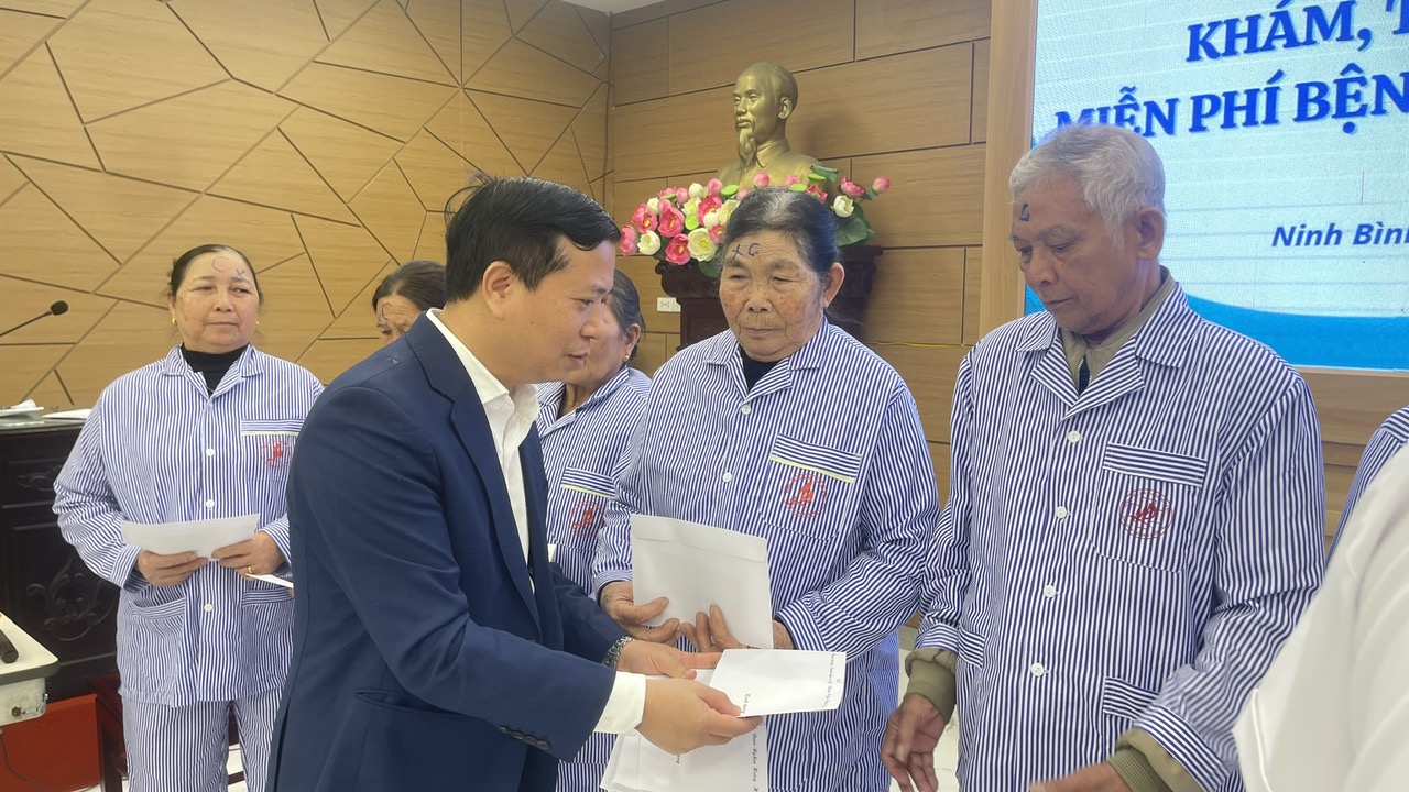 PGS. TS Phạm Ngọc Đông đã đến thăm, động viên bà con đến đăng ký khám mổ và đoàn cán bộ công tác đồng thời cùng với lãnh đạo bệnh viện Đa khoa Nam Định và Bs Nguyễn Hữu Chiến Phó chủ tịch Hội doanh nhân Nghĩa Hưng tại Hà Nội gửi tặng những xuất quà tới bà con nhân dân tới khám và phẫu thuật trong đợt này.