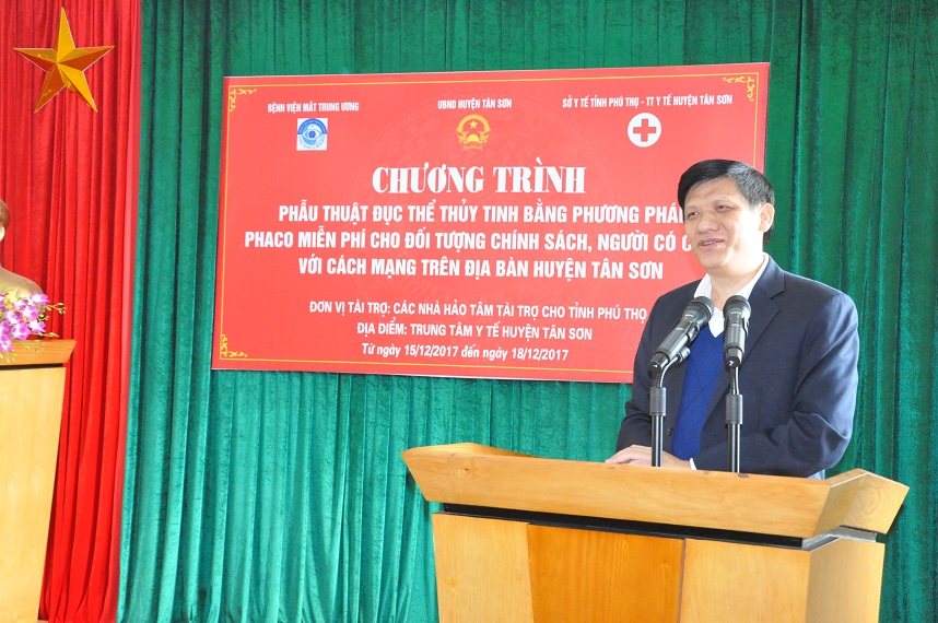 Huyện Tân Sơn, tỉnh Phú Thọ là huyện miền núi và là một trong 62 huyện nghèo của của cả nước. Tân Sơn được tách ra từ huyện Thanh Sơn của tỉnh Phú Thọ năm 2007. Tuy nhiên do đặc điểm địa lý chủ yếu là đồi núi, 83% dân cư là người thiểu số với các dân tộc: Mường, Dao, H'Mông, Thái, La Chí, Tày, Nùng...nên việc chăm sóc mắt còn rất hạn chế, vẫn còn nhiều người mắc các bệnh về mắt trong đó có đục thể thủy tinh- nguyên mù lòa số một tại Việt Nam. Với mong muốn mang những ứng dụng khoa học kỹ thuật tiên tiến nhất của ngành Nhãn khoa tới các vùng sâu, vùng xa, thực hiện bổn phận của ngành là giải phóng mù lòa đem lại ánh sáng cho người dân, Bệnh viện Mắt Trung ương đã phối hợp với các cấp chính quyền địa phương đã đưa xe mổ lưu động đến tận nơi, phục vụ bà con Tân Sơn từ ngày 15 đến 18 tháng 12 năm 2017. Nguồn kinh phí do các nhà hảo tâm tài trợ cho tỉnh Phú Thọ.