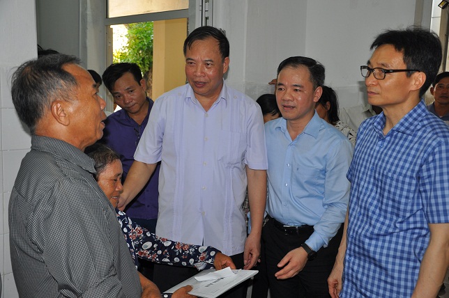 Đồng chí Phó Thủ tướng Chính phủ Vũ Đức Đam thăm, tặng quà người cao tuổi khám phẫu thuật mắt miễn phí tại Bệnh viện Đa khoa huyện Thanh Miện