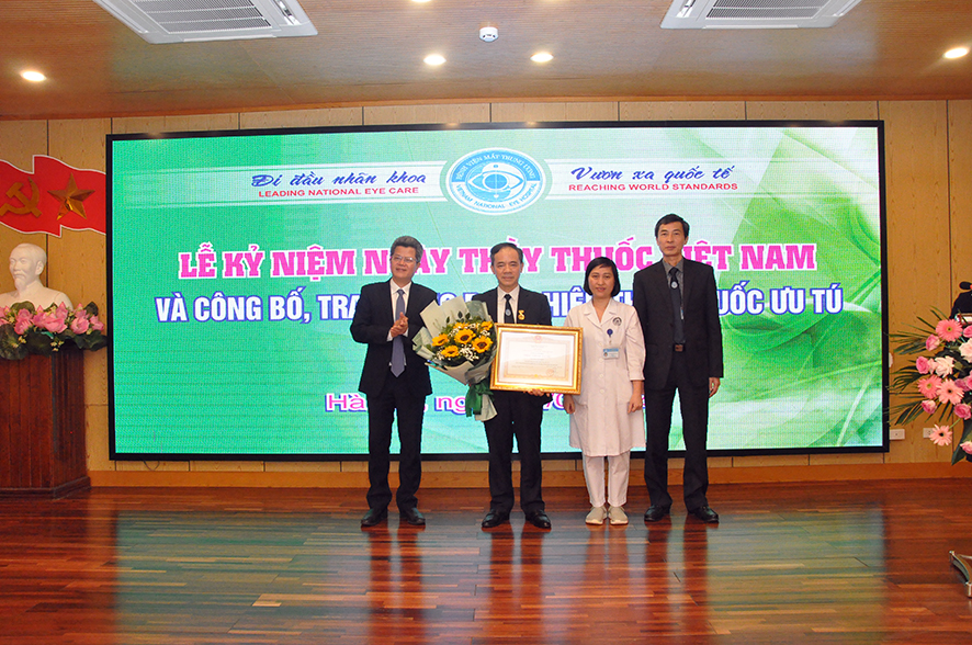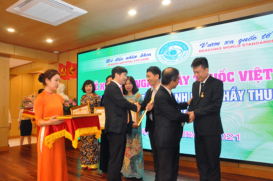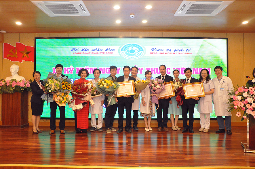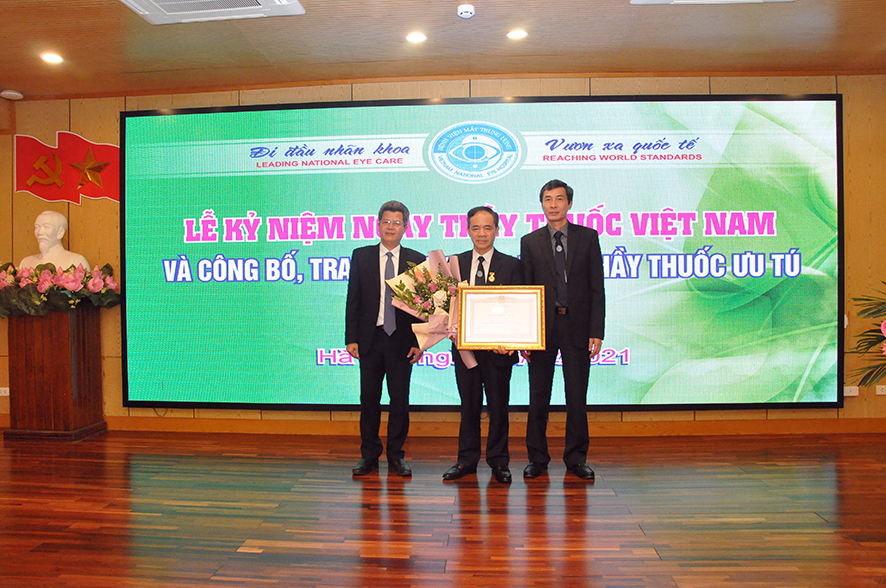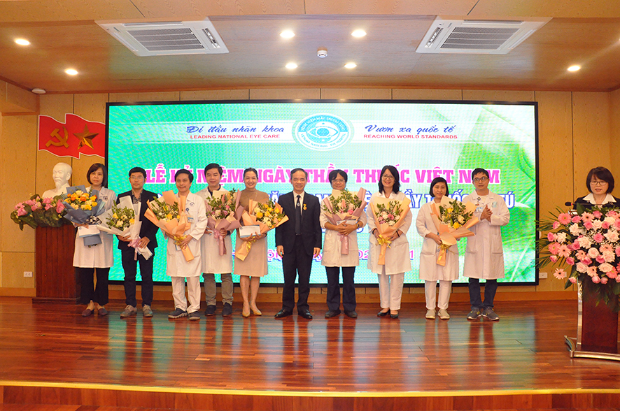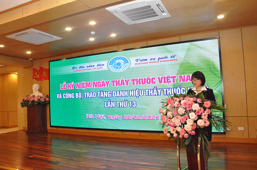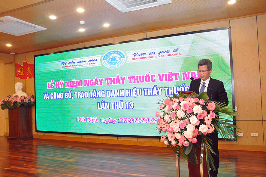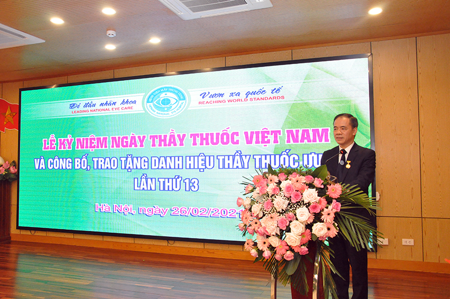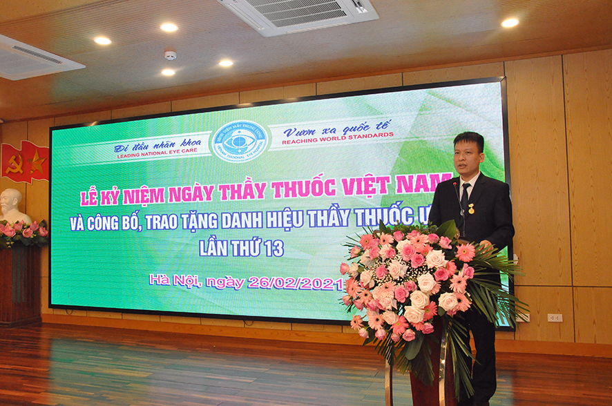 Chiều ngày 26/2/2021, Bệnh viện Mắt Trung ương (BVMTW) đã long trọng tổ chức lễ Kỷ niệm 66 năm ngày Thầy thuốc Việt Nam và Lễ công bố, trao tặng danh hiệu Thầy thuốc Ưu tú lần thứ XIII cho các cá nhân tiên tiến tiêu biểu đã và đang làm việc tại Bệnh viện. Trong bối cảnh dịch bệnh COVID-19 diễn biến phức tạp, công việc đầu năm còn bộn bề, buổi lễ đã diễn ra nhanh gọn, đảm bảo các nguyên tắc an toàn phòng bệnh, theo tinh thần tiết kiệm cùng cả nước hướng về các đồng nghiệp và nhân dân đang gồng mình chống dịch.