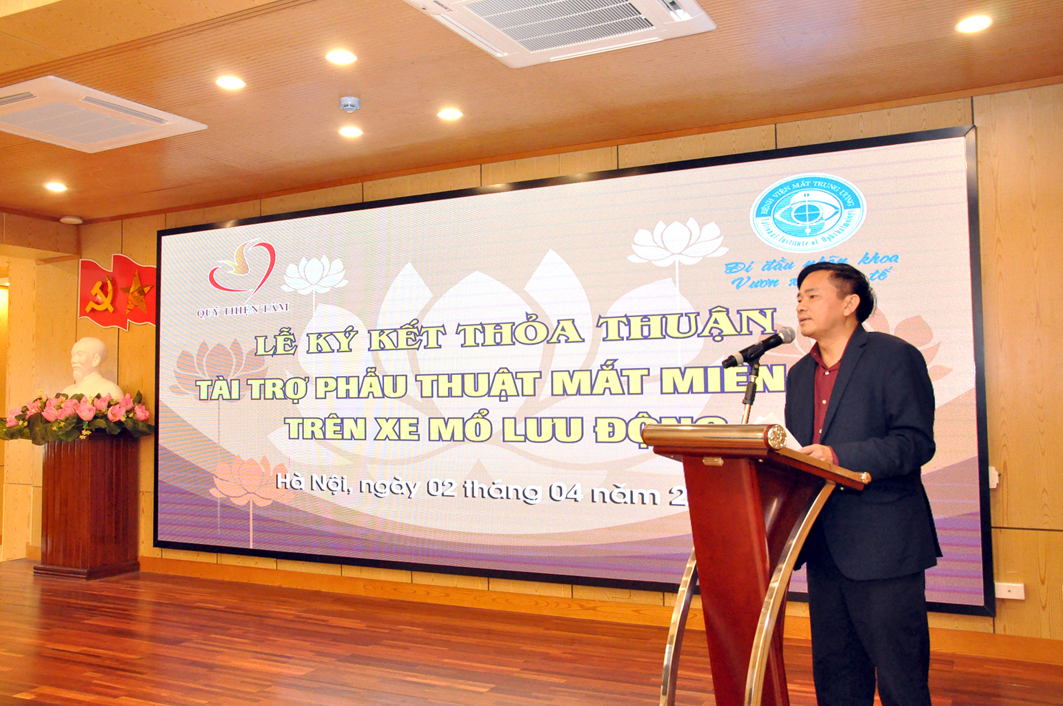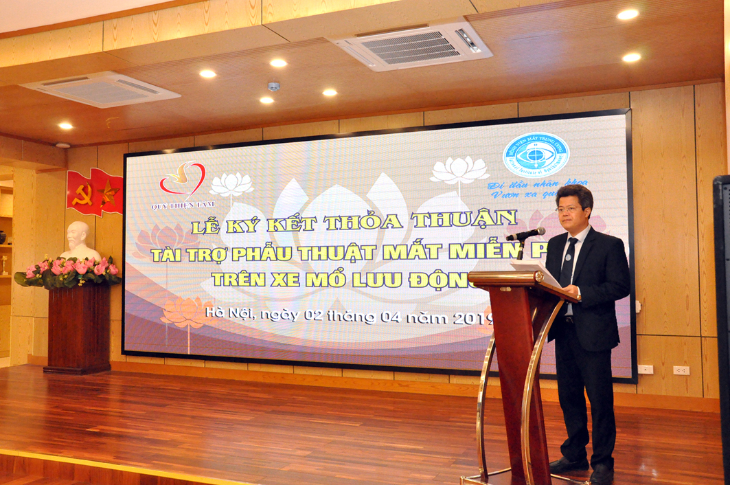 Phát biểu của TS Nguyễn Đình Anh- Bộ Y tế, PGS-TS Nguyễn Xuân Hiệp đại diện cho đơn vị chủ quản tiếp nhận tài trợ đã một lần nữa đánh giá cao tầm ảnh hưởng, uy tín, tác dụng to lớn đối với cộng đồng của các hoạt động tài trợ đến từ Quỹ Thiện tâm. Các hoạt động này cỗ vũ và làm lan rộng tinh thần tương thân- tương ái trong xã hội, giảm nhẹ ngân sách cho nhà nước, tăng cơ hội tiếp cận tới dịch vụ y tế cho nhiều bệnh nhân nghèo, kém may mắn. Bệnh viện Mắt Trung ương với thế mạnh về chuyên môn, nhân lực và vật lực cam kết sẽ phối hợp với Quỹ hoàn thành nhiệm vụ chung theo khuôn khổ của thỏa thuận.