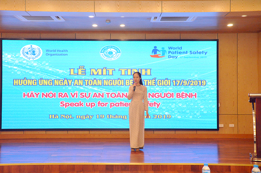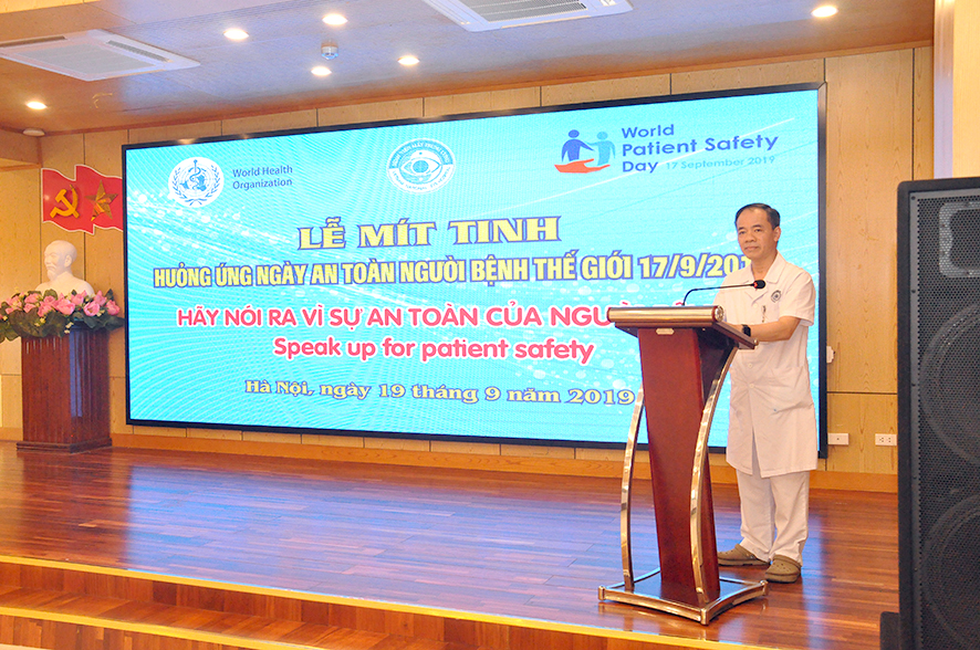 PGS.TS. Nguyễn Xuân Hiệp cho biết ngày 17/9 vừa qua Bộ Y tế đã tổ chức hàng loạt hoạt động hưởng ứng sự kiện này. Với quan điểm: Môi trường cởi mở và không đổ lỗi là điều kiện tối thiểu để xây dựng văn hóa an toàn người bệnh, trong nhiều năm qua Bệnh viện mắt TW luôn ưu tiên chú trọng công tác đảm bảo an toàn người bệnh. Bệnh viện đã tiến hành hàng loạt biện pháp: xây dựng quy trình kỹ thuật chuyên môn; cải cách các thủ tục hành chính, xây dựng các bảng kiểm trong quá trình khám chữa bệnh, phẫu thuật; áp dụng công nghệ thông tin để đơn giản hóa các thủ tục, tránh nhầm lẫn sai sót; thường xuyên cử cán bộ kiểm tra các quy trình, xử lý các thông tin phản hồi. Bên cạnh đó Bệnh viện thường xuyên tổ chức các lớp học về hành vi ứng xử, kiểm soát nhiễm khuẩn, tạo cảnh quan môi trường xanh sạch đẹp, cải tạo các nhà vệ sinh tránh trơn trượt, chú trọng tới vệ sinh buồng bệnh, nguồn nước tránh nhiễm trùng, lây chéo, tăng cường giám sát an toàn vệ sinh thực phẩm…