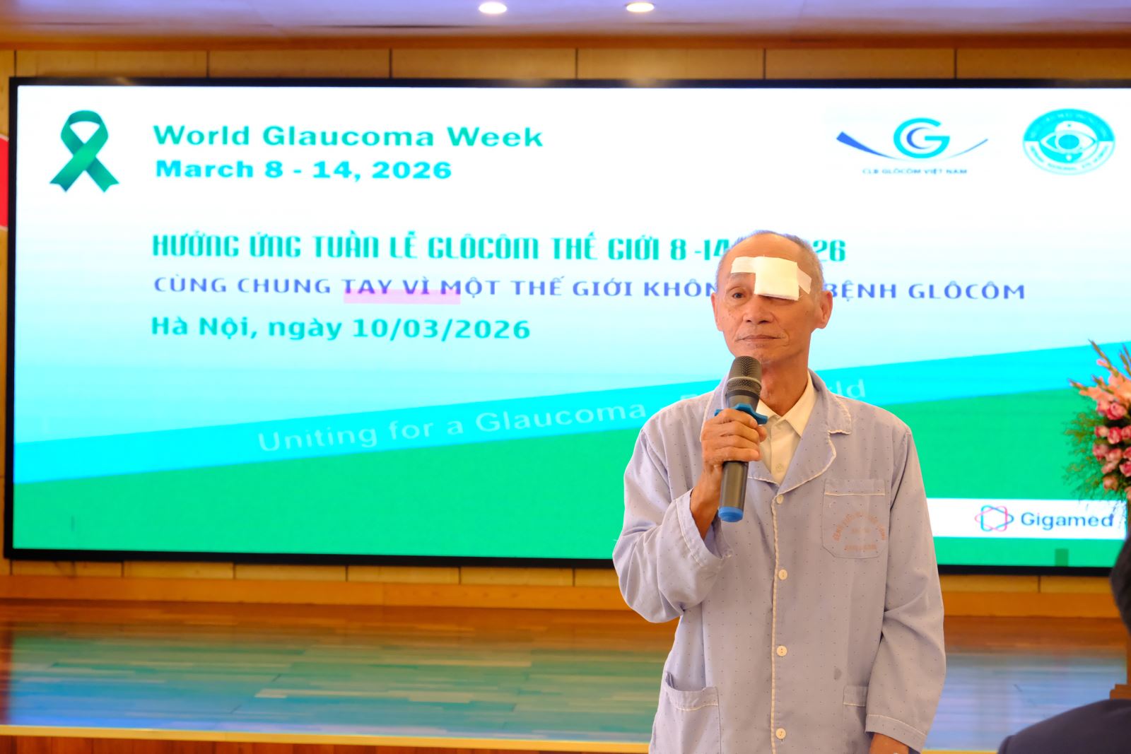 Ông cũng chia sẻ kinh nghiệm của bản thân về sự nguy hiểm khi mắc bệnh Glôcôm, thị lực suy giảm rất nhanh. Ông cũng nhận thấy, bệnh không chỉ gặp ở người cao tuổi mà hiện nay còn có rất nhiều bệnh nhân trẻ đang điều trị tại bệnh viện, thậm chí có người đã mất thị lực vĩnh viễn do đến khám chữa quá muộn.