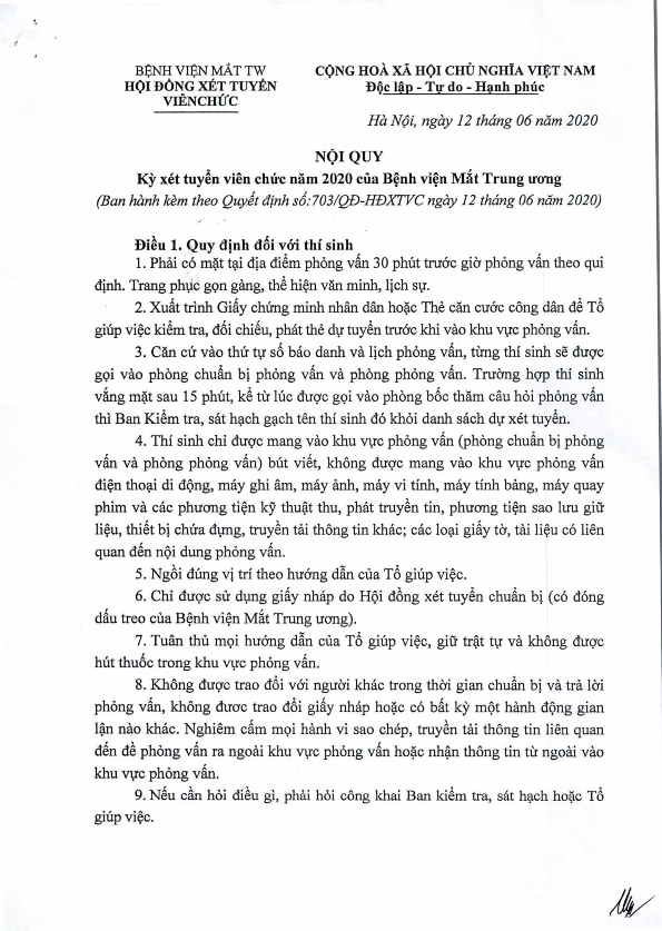 Nội quy kiểm tra, sát hạch thi tuyển viên chức năm 2020