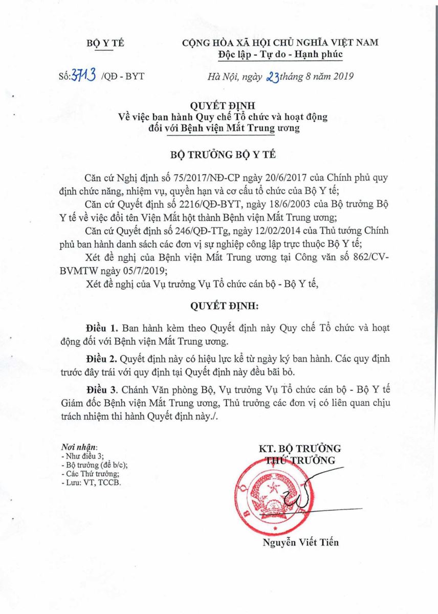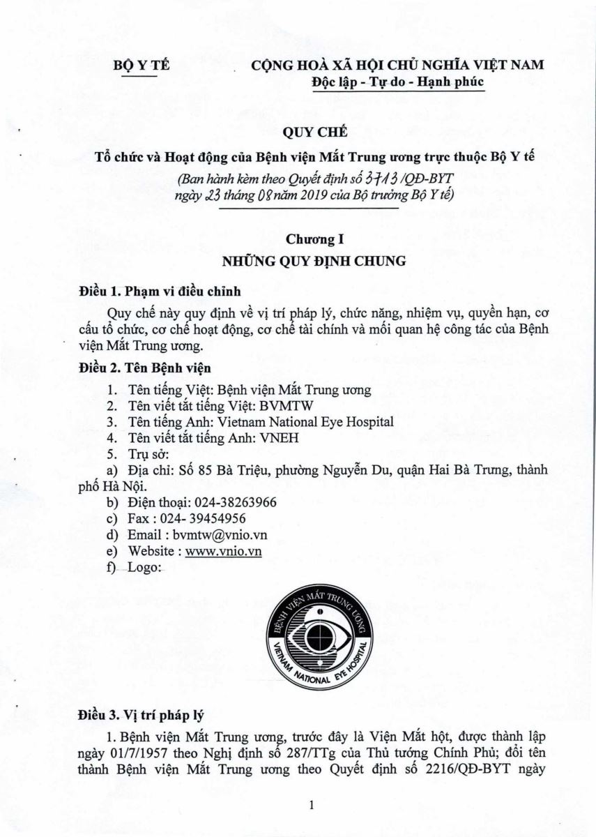 Quy chế - Tổ chức và hoạt động của Bệnh viện Mắt Trung Ương
