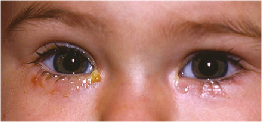 Hầu hết trẻ em bị bệnh đều có tiết dịch và đóng vảy quanh mắt nhưng nếu chảy nước mắt là triệu chứng duy nhất thì nên xem xét khả năng teo hệ thống lệ quản và bắt buộc phải loại trừ glocom bẩm sinh