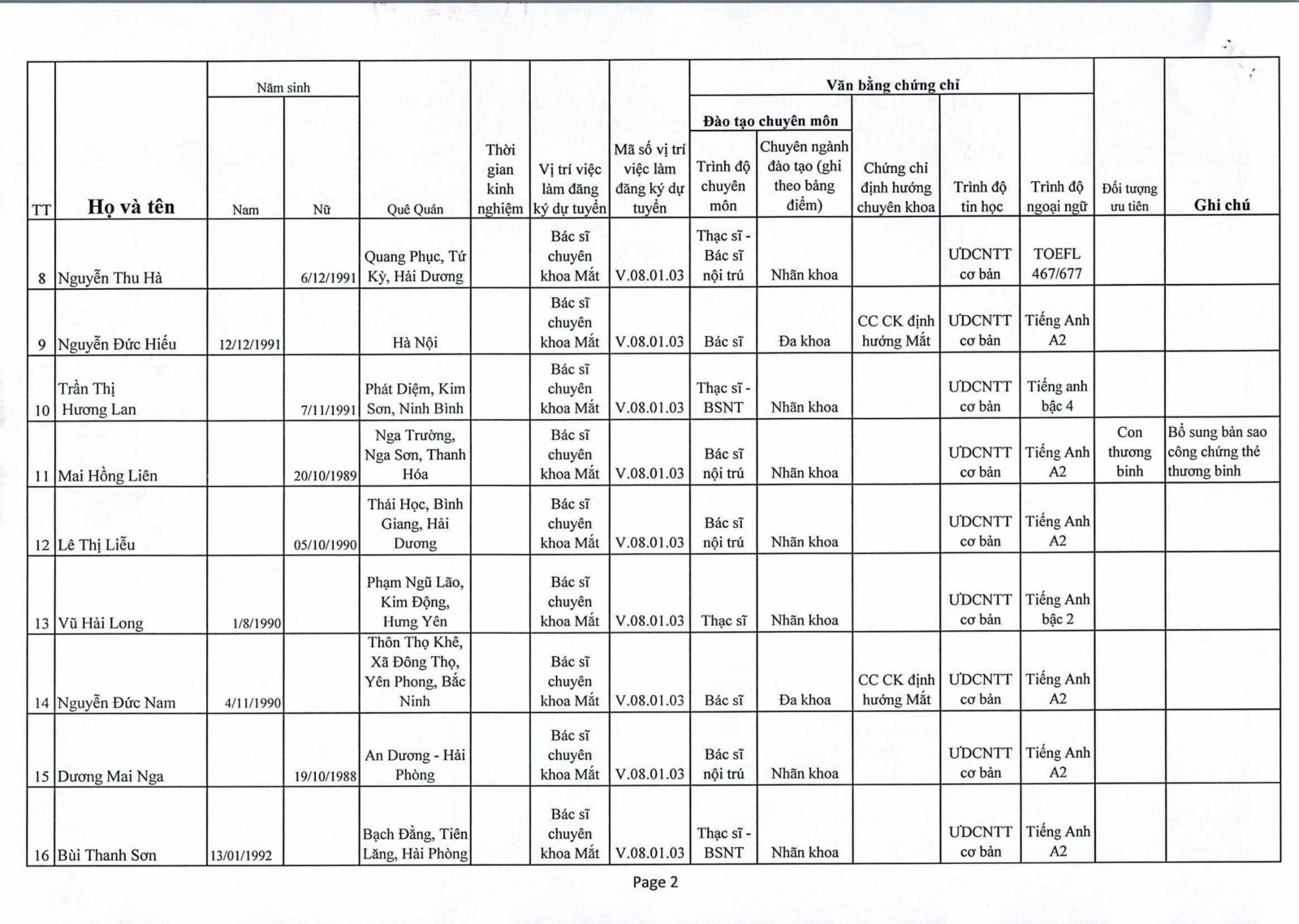 Thông báo - Danh sách thí sinh đủ điều kiện, tiêu chuẩn tham dự vòng 2 kỳ xét tuyển viên chức 2020 của Bệnh viện Mắt Trung ương
