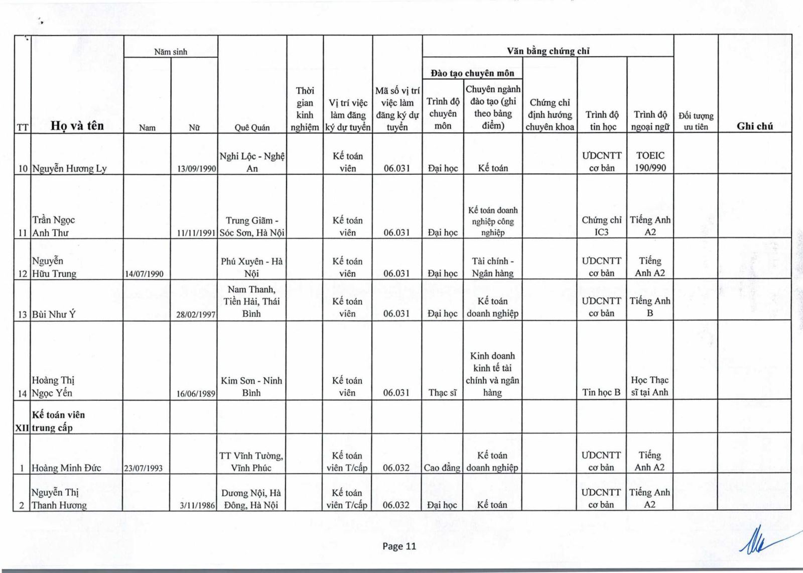 Thông báo : Kết quả trúng tuyển Nhân viên tiếp đón thuộc Phòng Công Tác Xã Hội