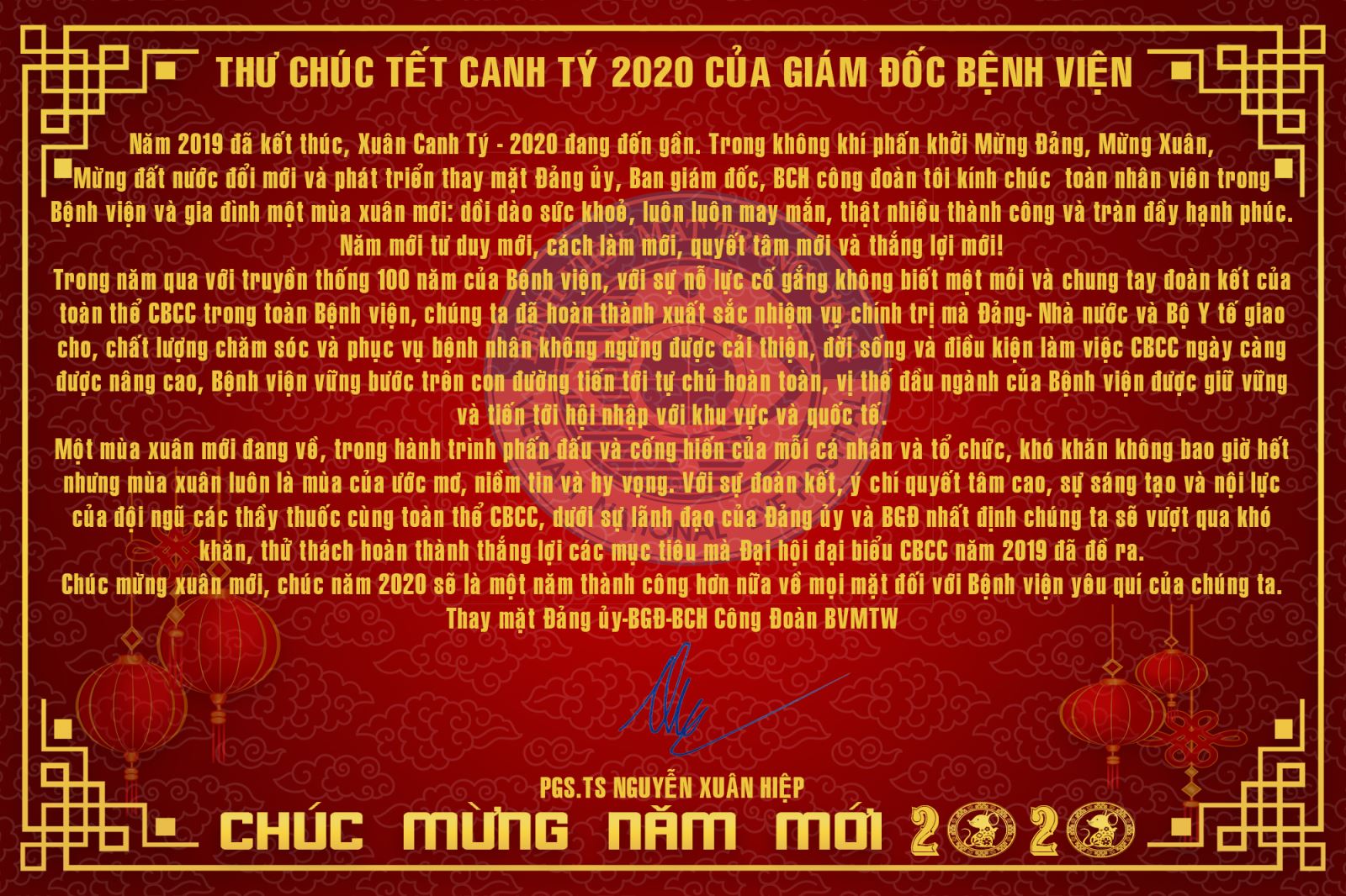 Thư chúc tết Canh Tý 2020 của Giám đốc Bệnh viện gửi toàn thể cán bộ công nhân viên chức BVMTW