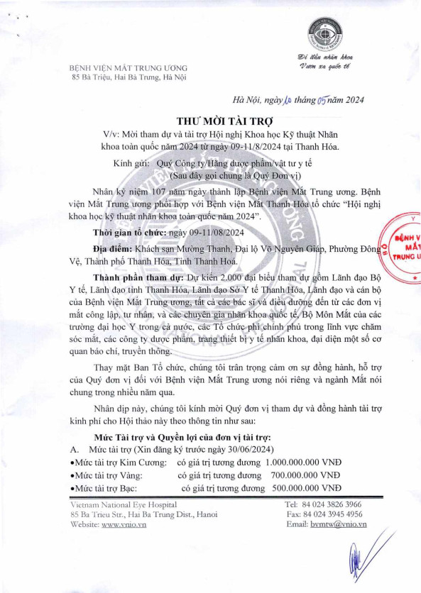 Thư mời tài trợ Hội nghị Khoa học kỹ thuật năm 2024