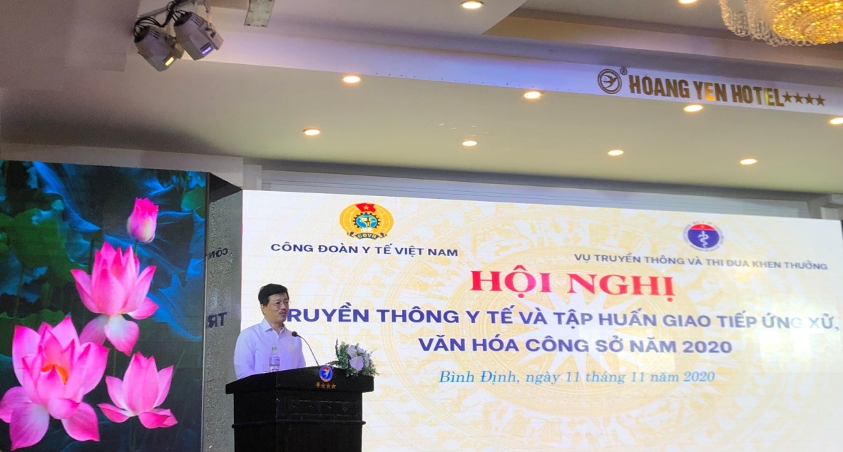 Ngày 11/11/2020, Hội nghị truyền thông y tế và tập huấn giao tiếp ứng xử, văn hóa công sở năm 2020 được Công đoàn Y tế Việt Nam phối hợp với Vụ Truyền thông và Thi đua Khen thưởng - Bộ Y tế tổ chức tại thành phố Quy Nhơn, tỉnh Bình Định, với mục tiêu nâng cao kiến thức, kỹ năng cho cán bộ y tế trong thực hiện giao tiếp ứng xử nơi công sở nhằm triển khai hiệu quả cuộc vận động “Đổi mới phong cách, thái độ phục vụ của cán bộ y tế hướng tới sự hài lòng của người bệnh