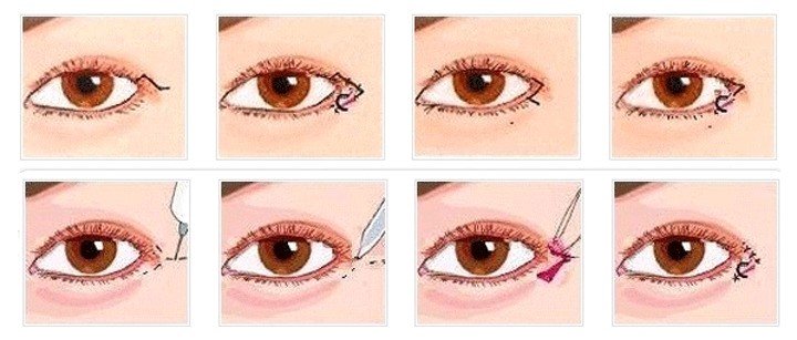 - - Như bất kỳ mổ xẻ nào biến chứng của mổ nhấn mí cũng sẽ có thể xảy ra. Đầu tiên tai biến của thuốc tê, của việc tiêm gây tê. Tai biến trong khi mổ chủ yếu là chảy máu, đường rạch hay cắt bỏ không tương thích. Sau mổ là tụ máu, nhiễm trùng, u hạt, lộ chỉ khâu. Tất cả viễn cảnh tươi đẹp mà bác sĩ và bệnh nhân muốn có thể vỡ tan tành.