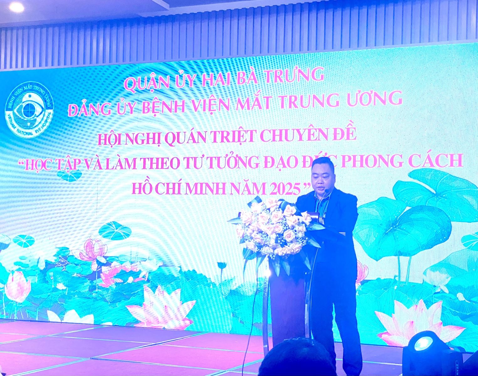 PGS.TS Phạm Ngọc Đông PGĐ quản lý phụ trách điều hành đã cám ơn bài nói rất cô đọng của khách mời thuyết trình, áp dụng nội dụng cuộc vận động vào chính bối cảnh Bệnh viện hiện tại. Ông nhấn mạnh như một hình thức tiết kiệm, Bệnh viện cần giảm thời gian chờ đợi cho bệnh nhân khi khám bệnh- điều trị - phẫu thuật, đơn giản hóa thủ tục, tăng cường tin học hóa- tự động hóa. Trước tình hình cạnh tranh với 17 bệnh viện tư nhân trong địa bàn Hà nội, chưa kể các bệnh viện công, xu hướng giảm số lượng bệnh nhân đến khám và phẫu thuật, không còn cách nào khác, từng CBVC phải làm tốt nhất công việc của mình, khiến bệnh nhân đặt trọn niềm tin yêu vào chuyên môn và y đức của chúng ta, không muốn bỏ ta mà đi nơi khác… Sau buổi sinh hoạt chính trị là tiệc liên hoan, giao lưu văn nghệ giao với Bệnh viện Mắt Phú Thọ tưng bừng, sôi nổi, hết mình.