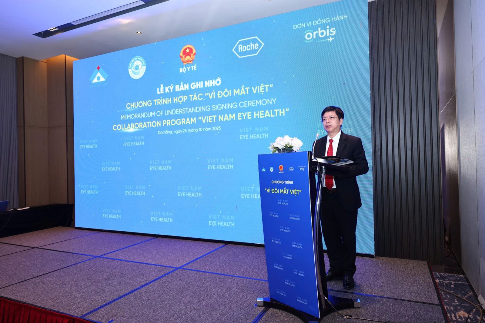 Phát biểu tại lễ ký kết, TS. Nguyễn Trọng Khoa, Phó Cục trưởng Cục Quản lý Khám, chữa bệnh (Bộ Y tế) nhấn mạnh: “Trong vai trò là đơn vị đầu mối và chịu trách nhiệm chung về việc quản lý, xây dựng và triển khai Chương trình “Vì đôi mắt Việt”, Cục Quản lý Khám, chữa bệnh cam kết đồng hành và hỗ trợ tối đa cho việc xây dựng mô hình quản lý toàn diện và các chính sách cho người bệnh võng mạc và phù hoàng điểm do đái tháo đường”. Ông bày tỏ tin tưởng rằng mô hình này giúp thúc đẩy ứng dụng các công nghệ mới như trí tuệ nhân tạo (AI) trong khám phát hiện sớm các bệnh lý về mắt, không chỉ giúp nâng cao chất lượng điều trị cho người bệnh mà còn là một bước tiến quan trọng cho sự phát triển chuyên khoa mắt tại các bệnh viện công, đặc biệt là ở tuyến tỉnh.