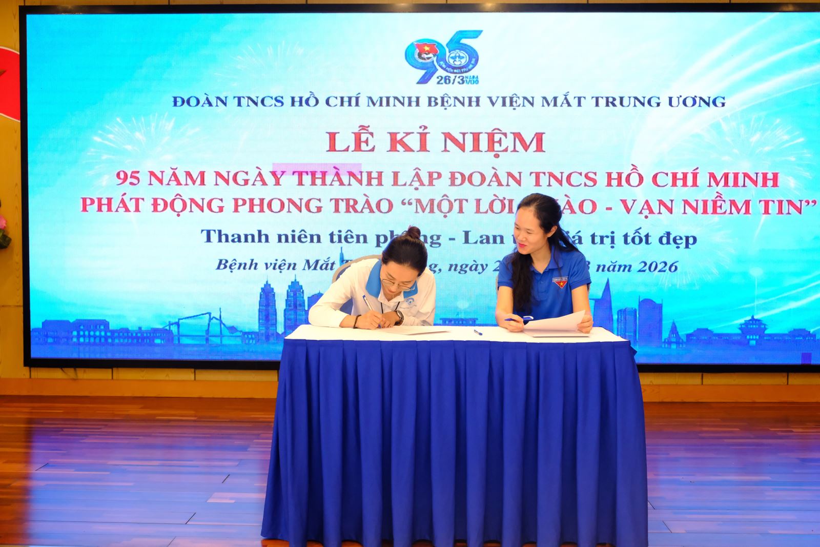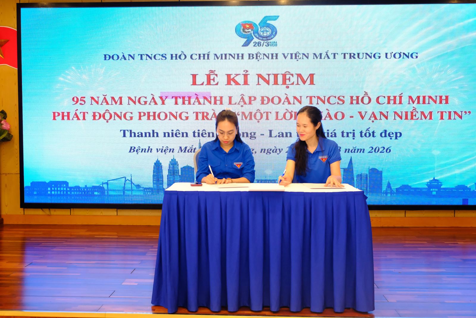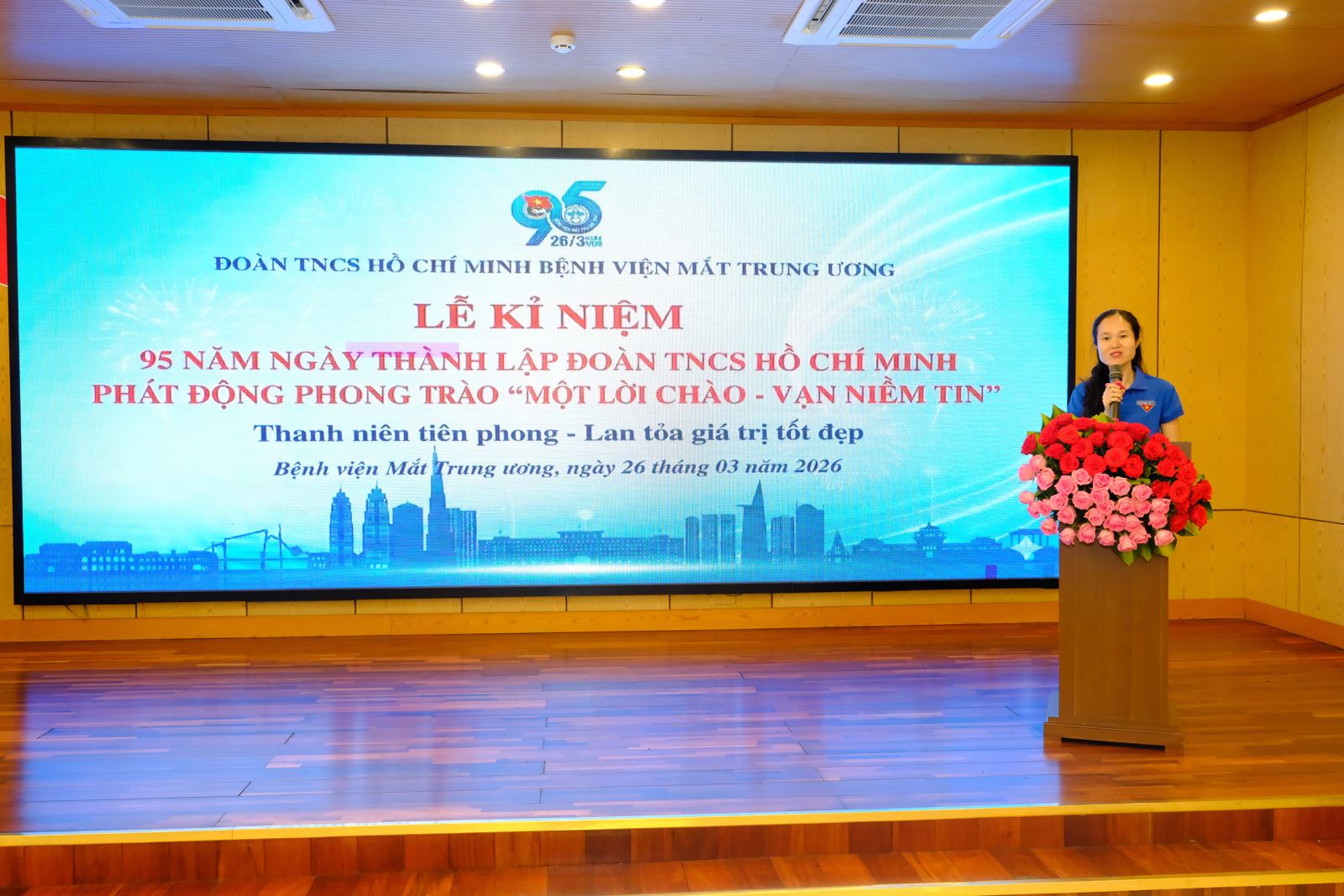 Chiều ngày 26/3/2026, Đoàn TNCS Hồ Chí Minh Bệnh viện Mắt Trung ương đã tổ chức Lễ kỷ niệm 95 năm Ngày thành lập Đoàn TNCS Hồ Chí Minh (26/3/1931 – 26/3/2026), đồng thời chính thức phát động phong trào thanh niên hành động với chủ đề “Một lời chào, vạn niềm tin”. Lễ kỷ niệm có sự tham dự của Đảng ủy, Ban Giám đốc Bệnh viện cùng toàn thể đoàn viên, thanh niên đến từ các chi đoàn, liên chi đoàn trực thuộc.