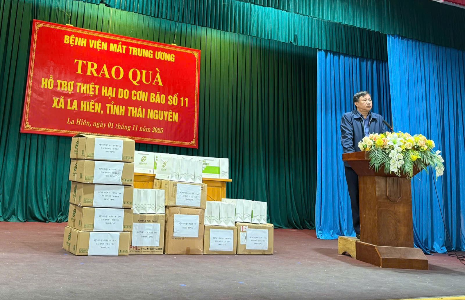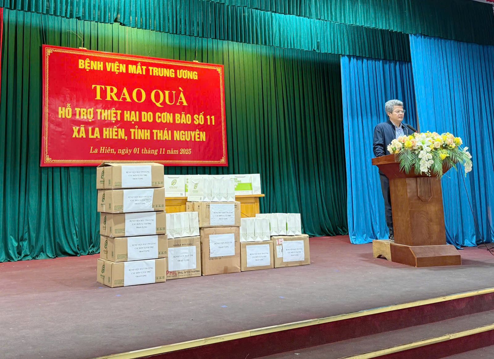 Ngày 01/11/2025, Đoàn công tác Bệnh viện Mắt Trung ương do PGS.TS.BS. Phạm Ngọc Đông – Bí thư Đảng ủy, Giám đốc Bệnh viện làm Trưởng đoàn đã có chuyến thăm và tặng quà tại xã La Hiên, huyện Võ Nhai, tỉnh Thái Nguyên trong chương trình “Chung tay hỗ trợ người dân vùng bão”. Hoạt động nhằm chia sẻ khó khăn, động viên 100 hộ gia đình chịu ảnh hưởng nặng nề sau cơn bão số 11, giúp bà con sớm ổn định cuộc sống.