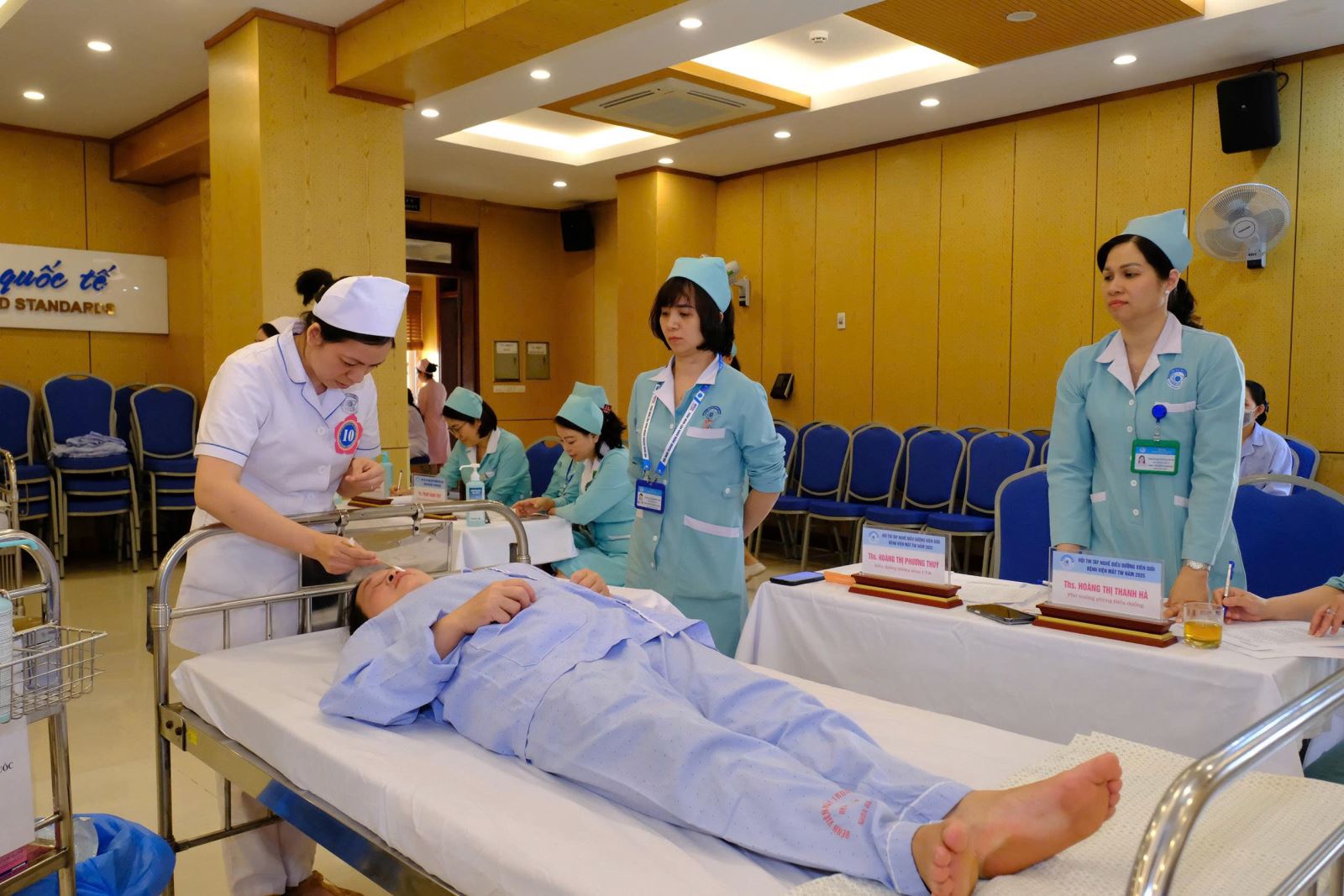 Trong vai trò Chủ tịch Hội đồng chấm thi, TS Nguyễn Văn Huy, Phó Giám đốc Bệnh viện Mắt Trung ương chía sẻ, vai trò của điều dưỡng vô cùng quan trọng trong quá trình điều trị, là cầu nối giữa bác sỹ điều trị với bệnh nhân. Lực lượng điều dưỡng viên chiếm một lực lượng đông đảo trong bệnh viện, với công việc đặc thù, có thời gian tiếp xúc trực tiếp, thường xuyên với người bệnh. Chất lượng chăm sóc người bệnh chuyển biến rõ nét hay không thông qua việc đổi mới các mô hình phân công chăm sóc, tổ chức chăm sóc người bệnh toàn diện, chuẩn hóa các quy trình kỹ thuật điều dưỡng, kỹ thuật viên.